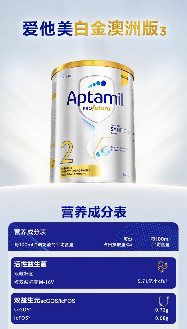 Aptamil Platinum Australian Edition Older Infant Formula Milk Powder Stage 2 (6-12 months) 900g Australian Platinum