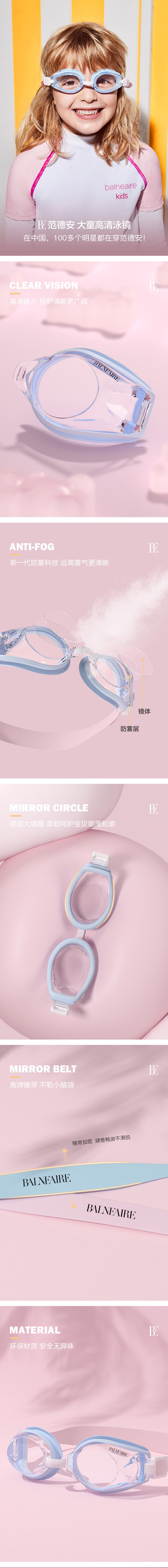 BALNEAIRE professional children's swimming goggles with high definition and vision, 3D fit, waterproof and anti-fog YJ016-1, hot boy red