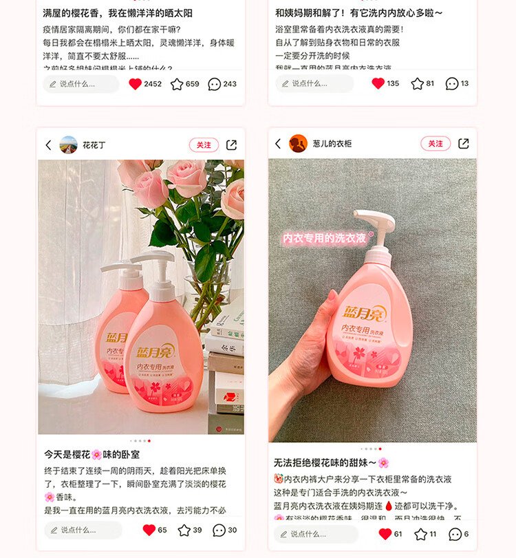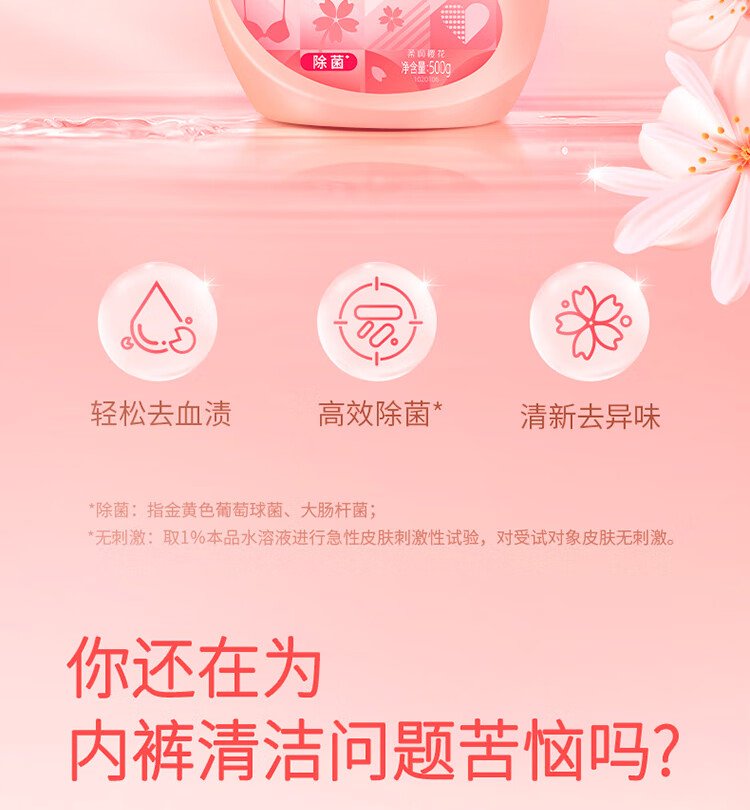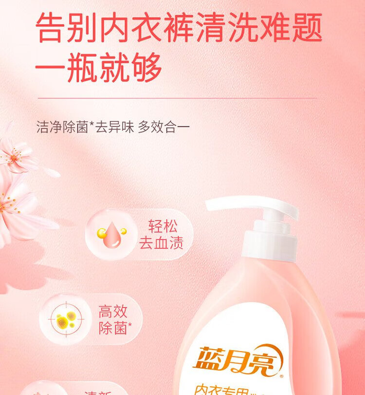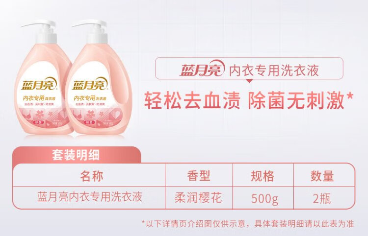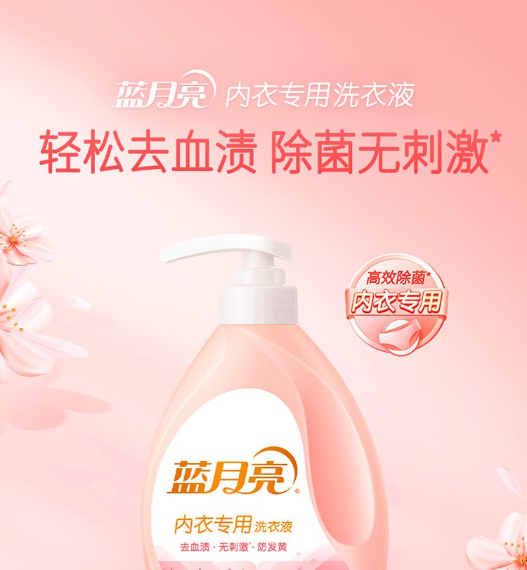 Blue Moon Underwear Laundry Detergent Underwear Laundry Detergent Sakura Scent 500g*2 Bottles Removes Blood Stains, Deodorizes and Removes Bacteria >99%