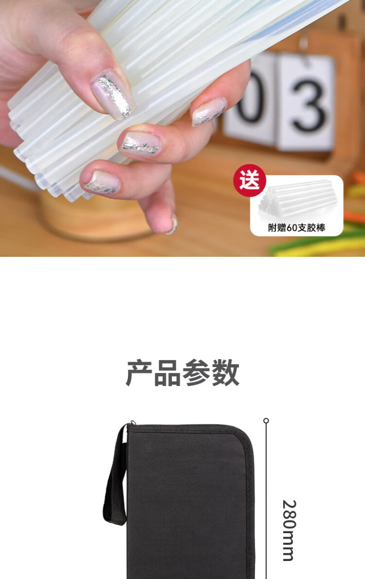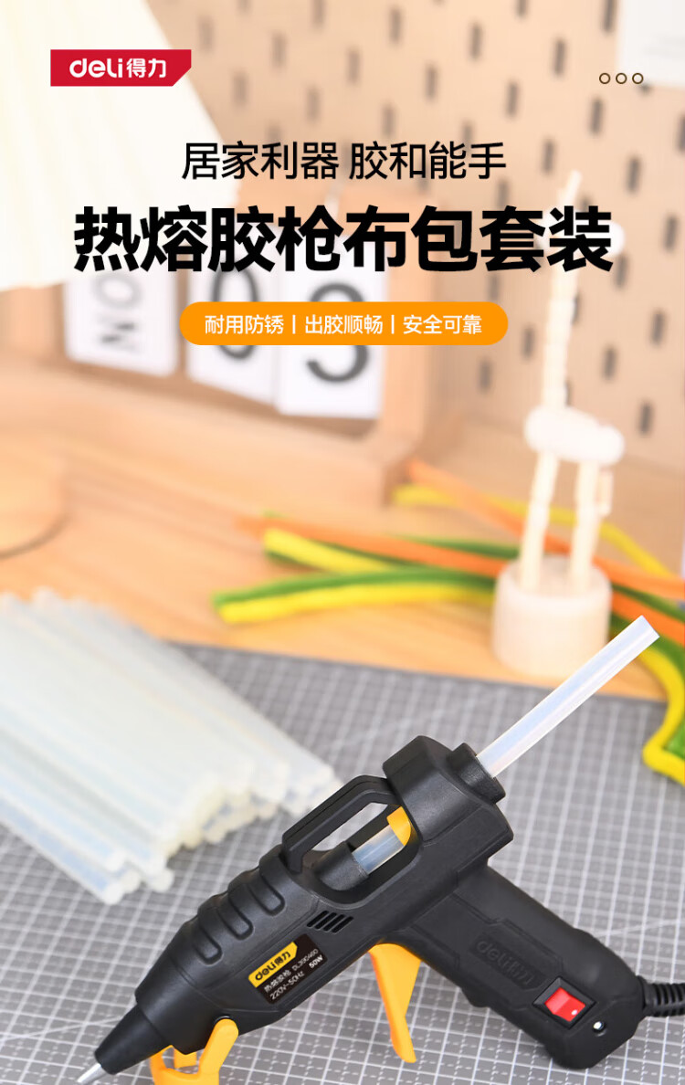 Deli Hot Melt Glue Gun Cloth Bag Set Handmade DIY Home Glue Gun + 60 Glue Sticks + Oxford Storage Bag