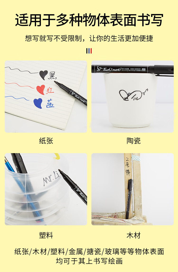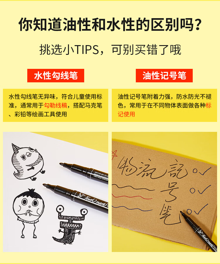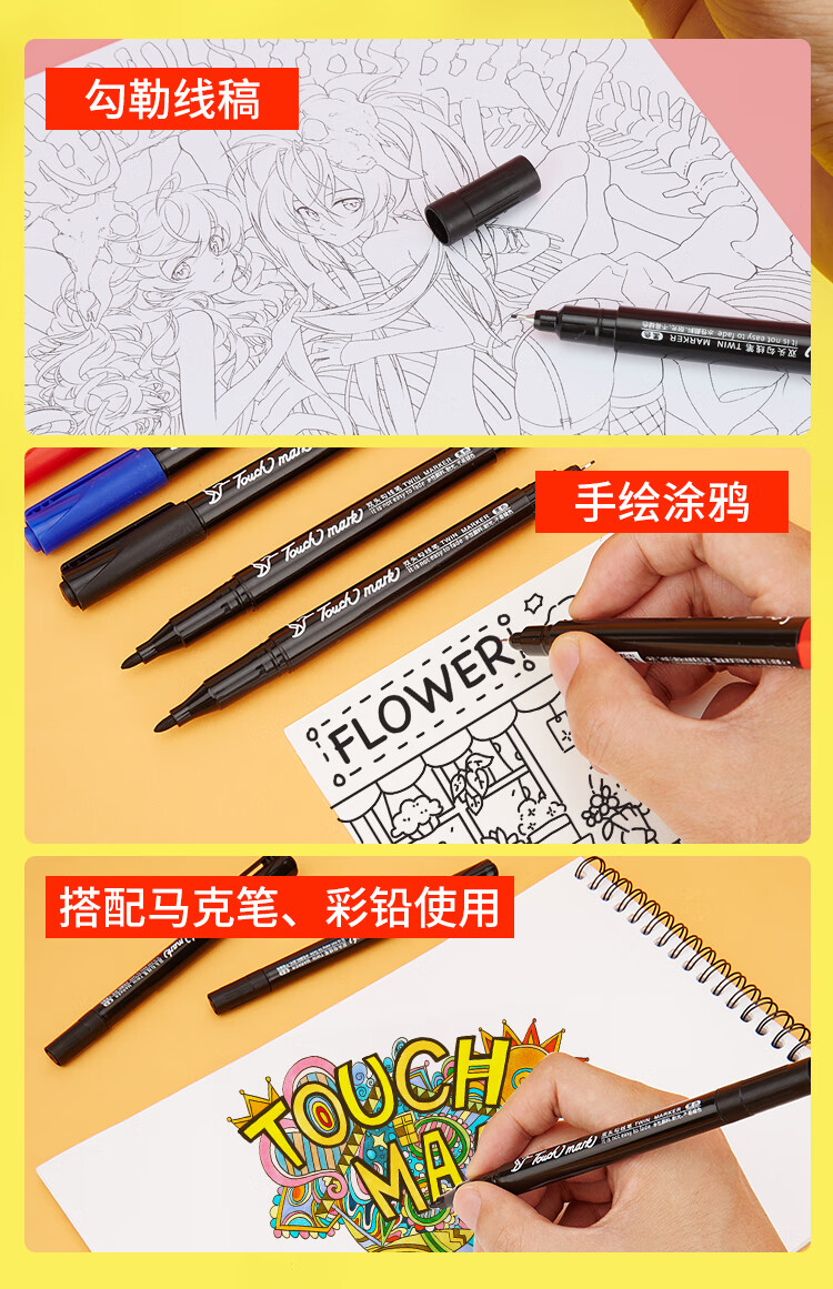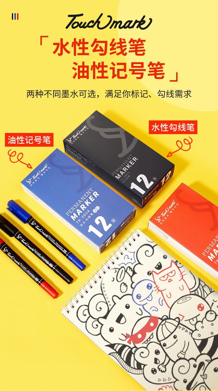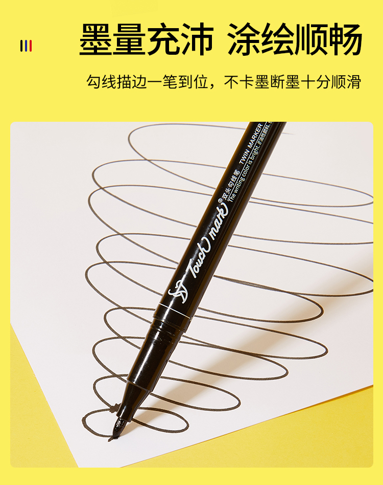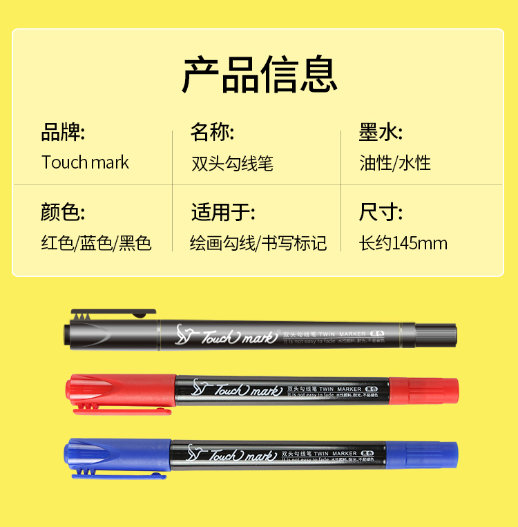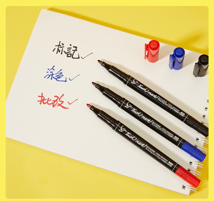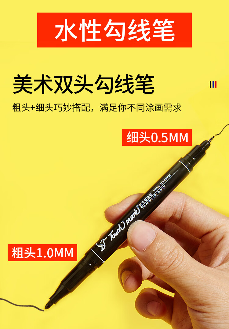 Touch mark double-ended hook pen for students, oil-based marker for art, water-based hook pen, black box