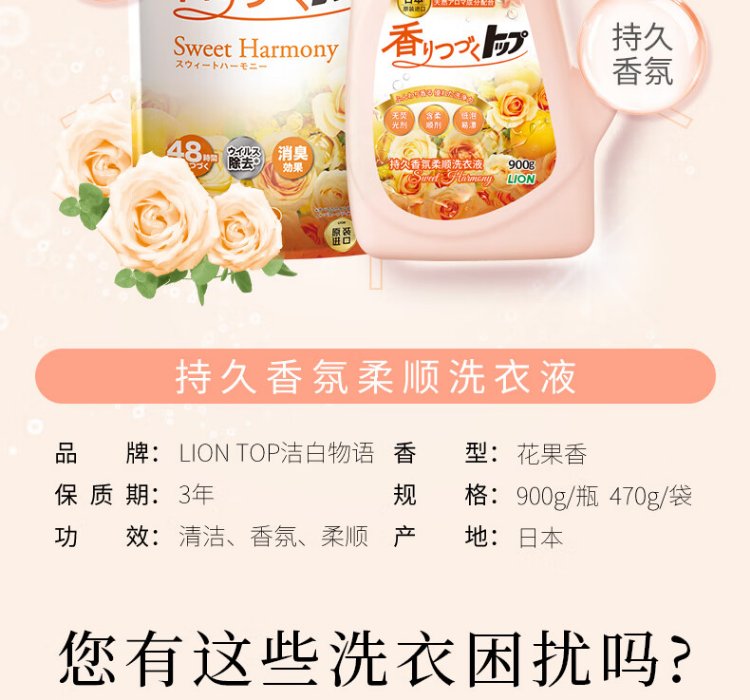 Lion Nanole fragrance laundry detergent floral and fruity 900g+500g*4 long-lasting fragrance, antibacterial and mite removal