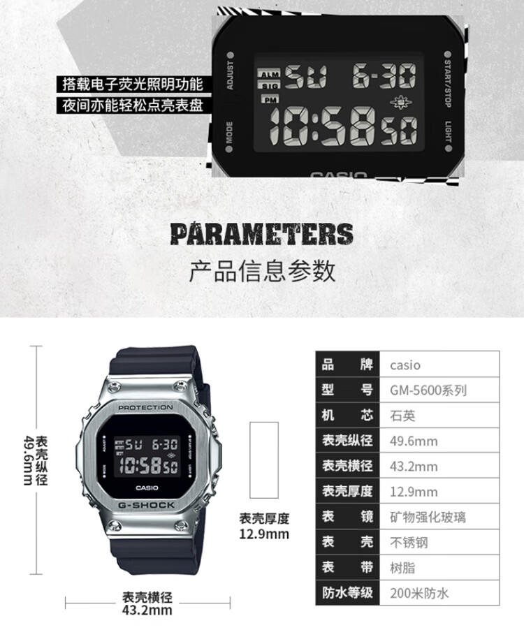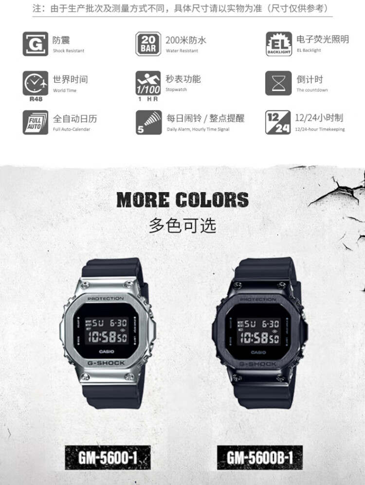 CASIO G-SHOCK classic small square waterproof and shockproof LED lighting sports men's watch GM-5600-1DR
