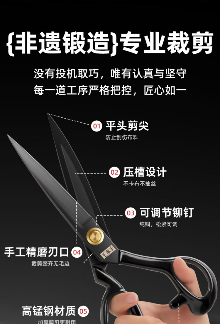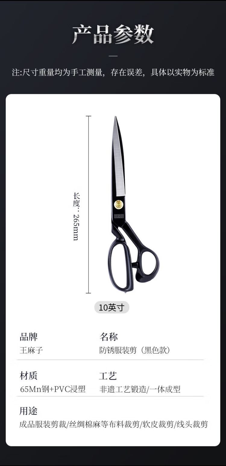 Wang Mazi tailoring scissors, industrial-grade sewing and cutting scissors, clothing-specific handmade large scissors, rust-proof, 10 inches