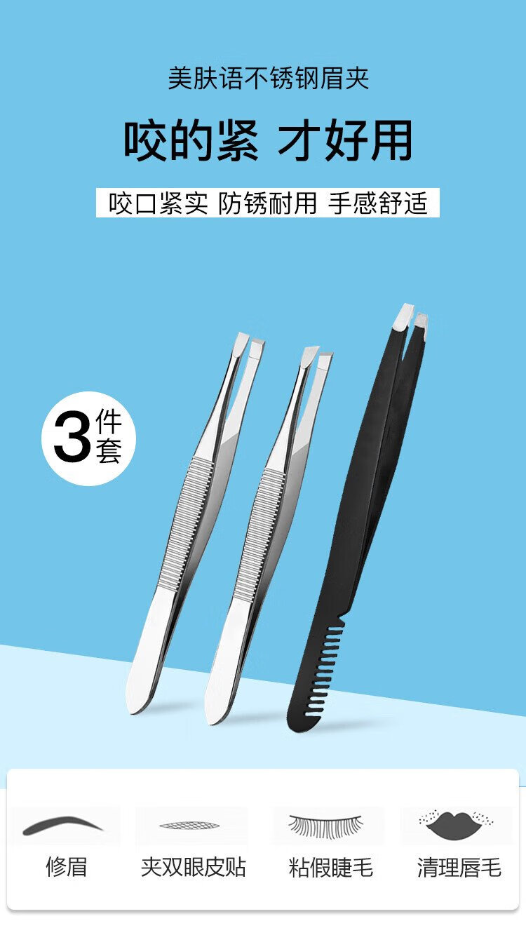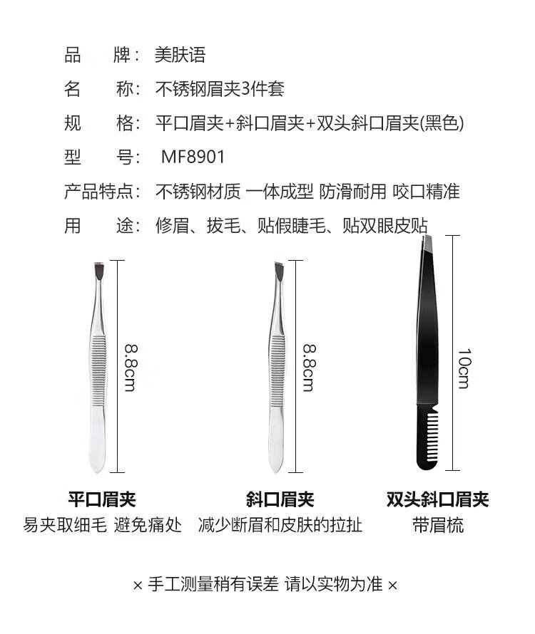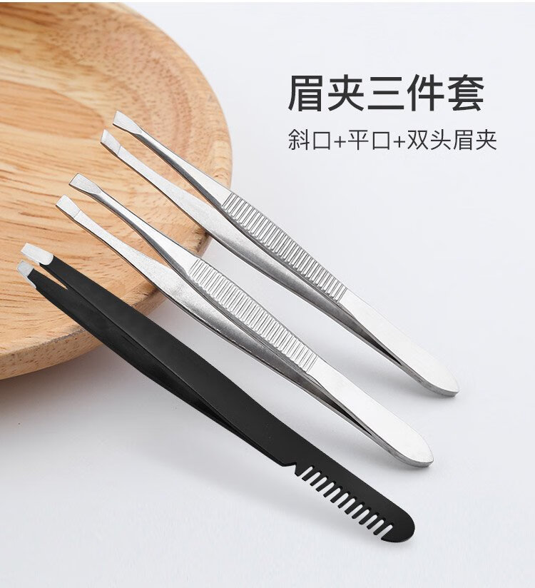 Beauty Skin Stainless Steel Eyebrow Clip Tweezers 3 pieces with eyebrow comb plucking tweezers eyebrow beard false eyelash curler plucking pliers MF8901