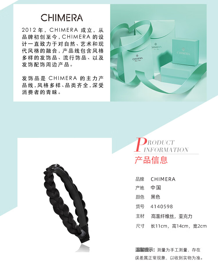 Chimera (CHIMERA) Korea wide-brimmed versatile headband women's braided wig hair hoop fiber silk forest hairpin hair accessories girl birthday gift