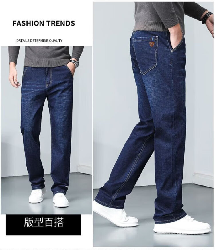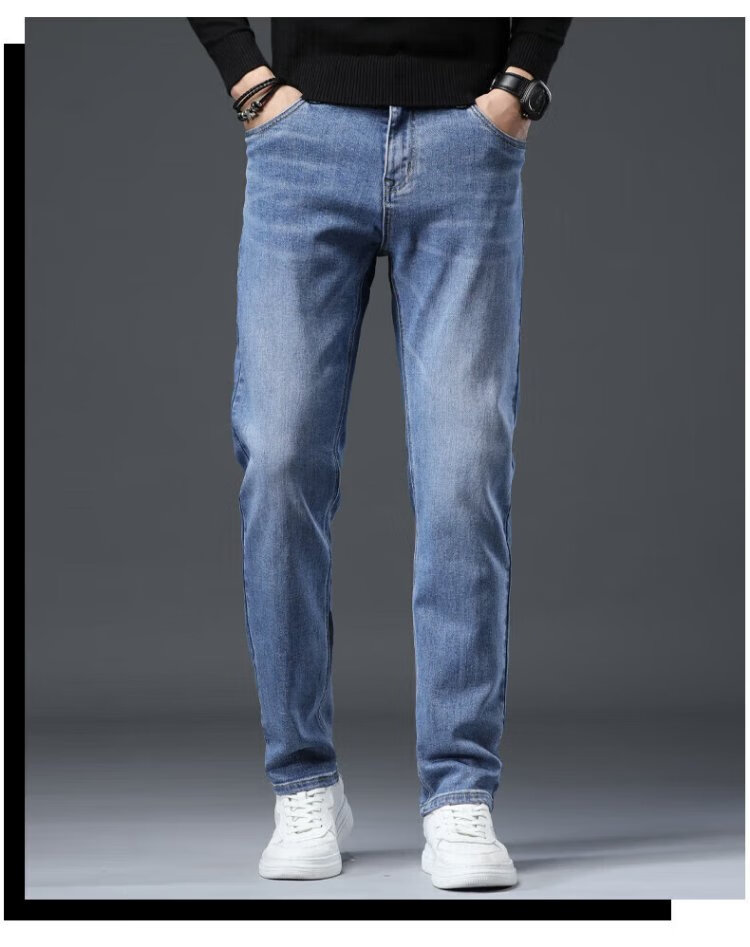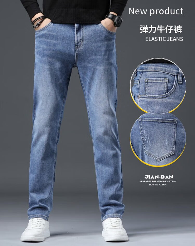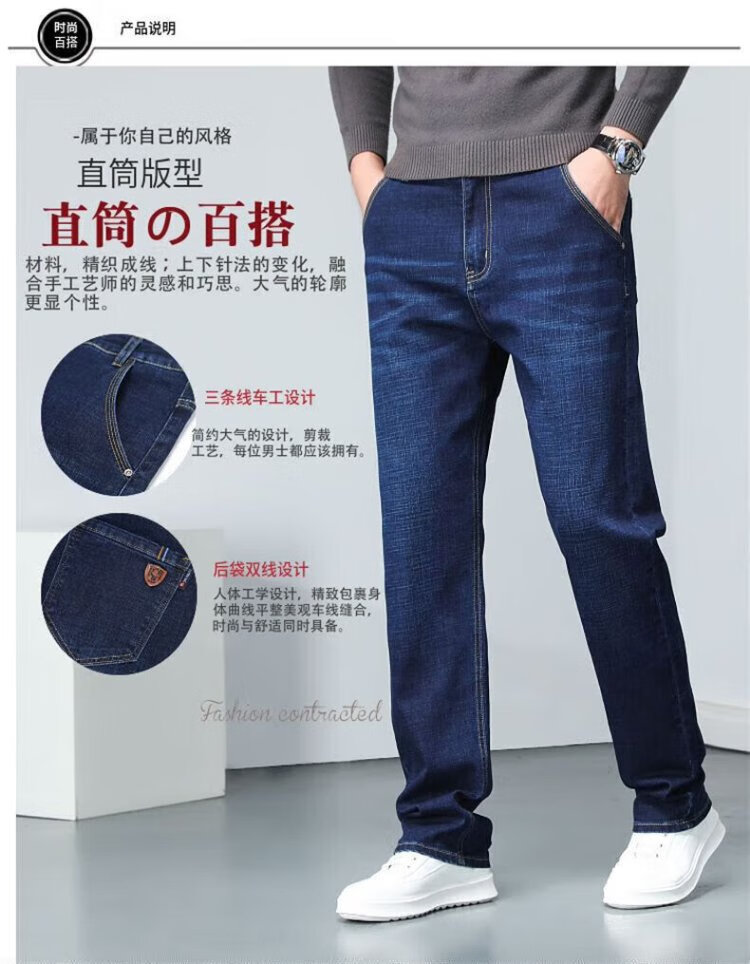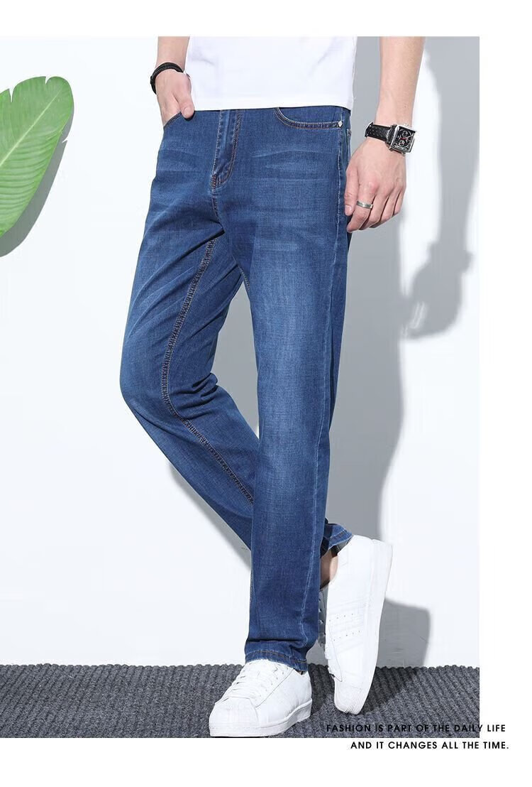 Pierre Cardin jeans men's autumn cotton elastic breathable slim business slim straight pants long pants blue size 33