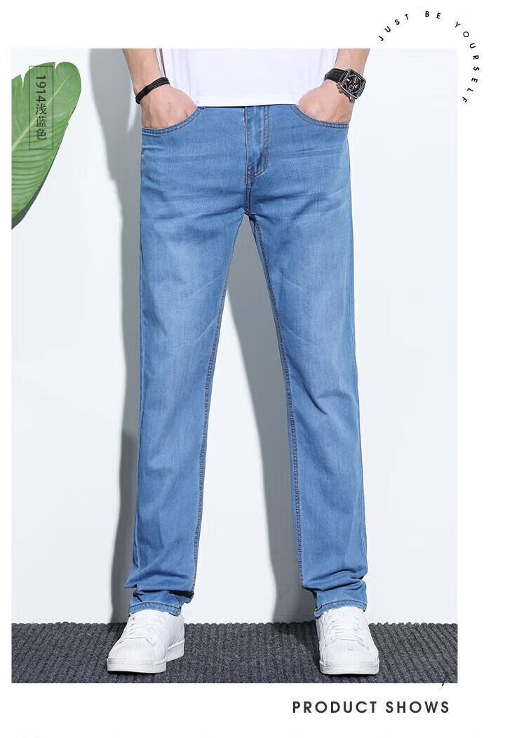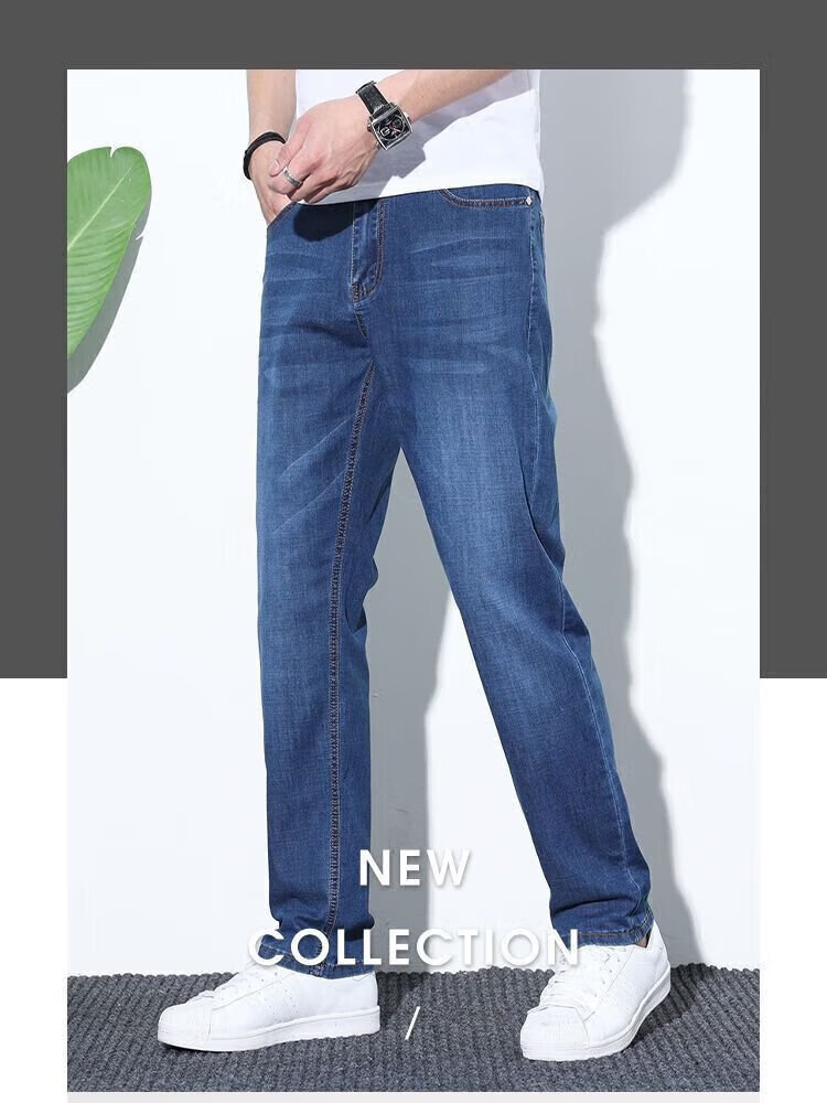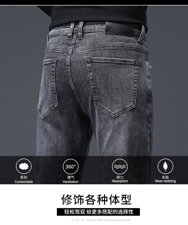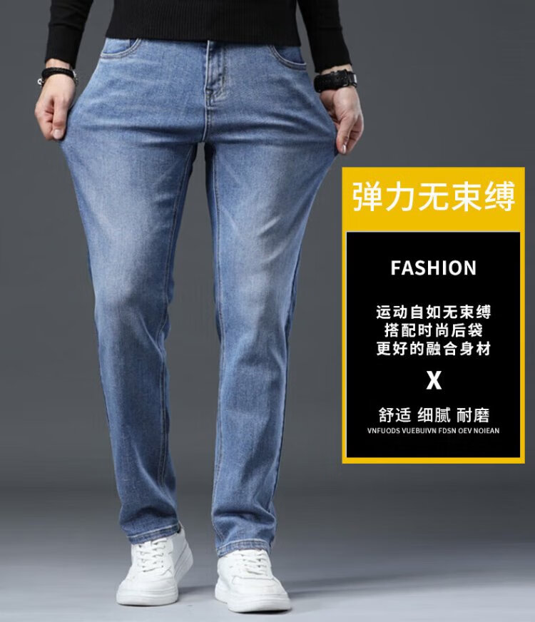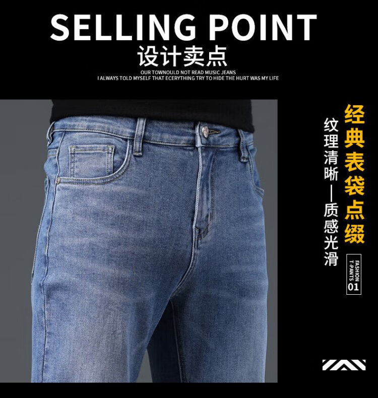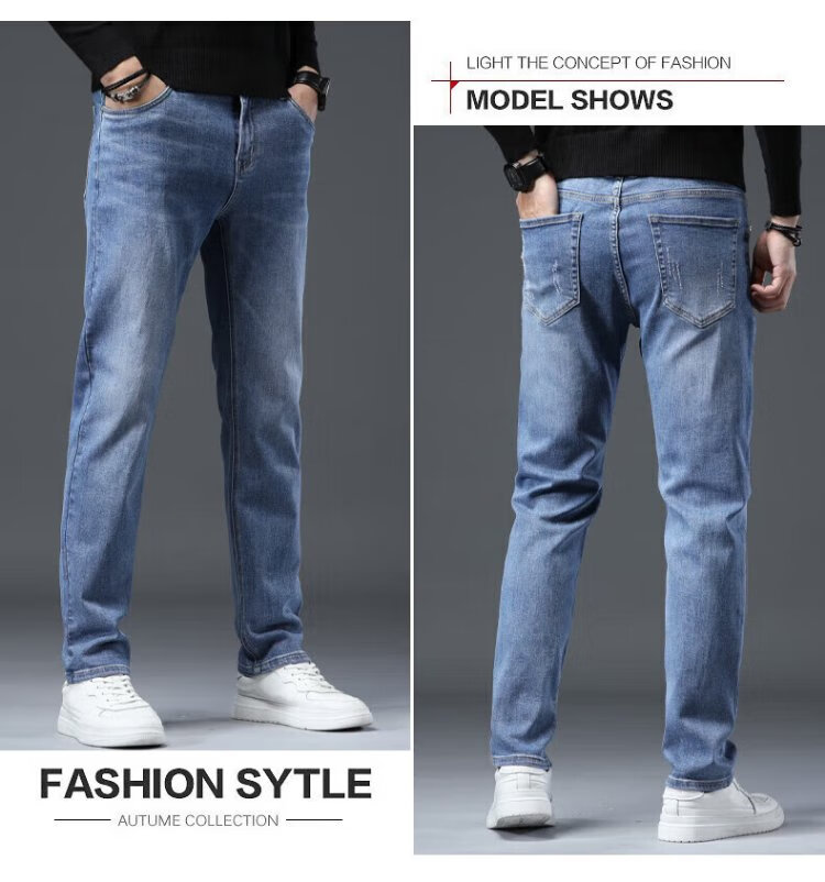 Pierre Cardin jeans men's autumn cotton elastic breathable slim business slim straight pants long pants blue size 33