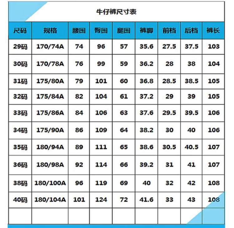 China(cm) 72-76 76-81 81-87 87-93 93-98