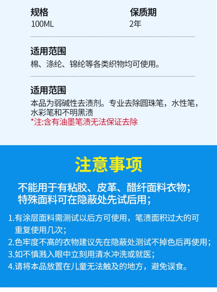 Yi Lianjie Clothes Pen Stain Remover 100ml Pen Stain Remover Magic Gel Pen Ballpoint Pen Pen Stain Remover