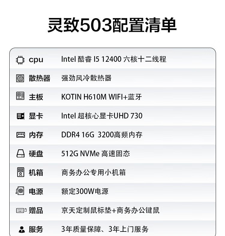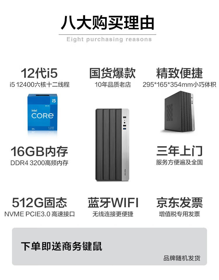 Jingtian Huasheng Lingzhi 503 commercial office desktop computer complete set (i5-12400 16G 512G wifi business keyboard and mouse for three years) single host DIY assembly machine