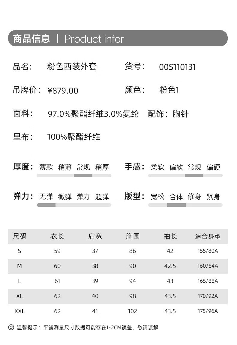 China (cm) 160-165/84-86 165-170 / 88-90 167-172 / 92-96 168-173 / 98-102 170-176 / 106-110