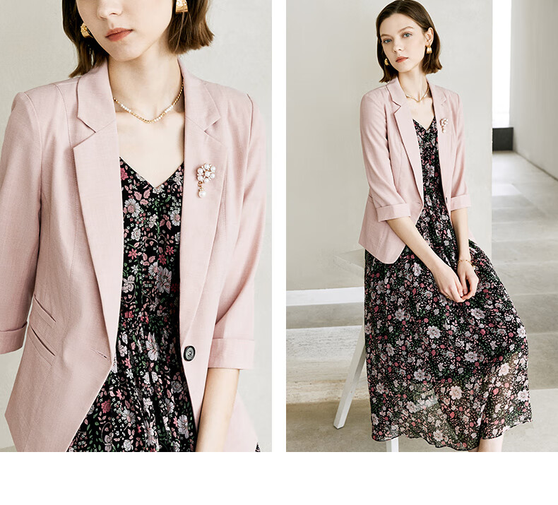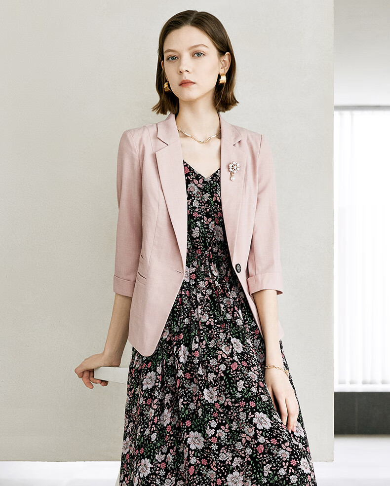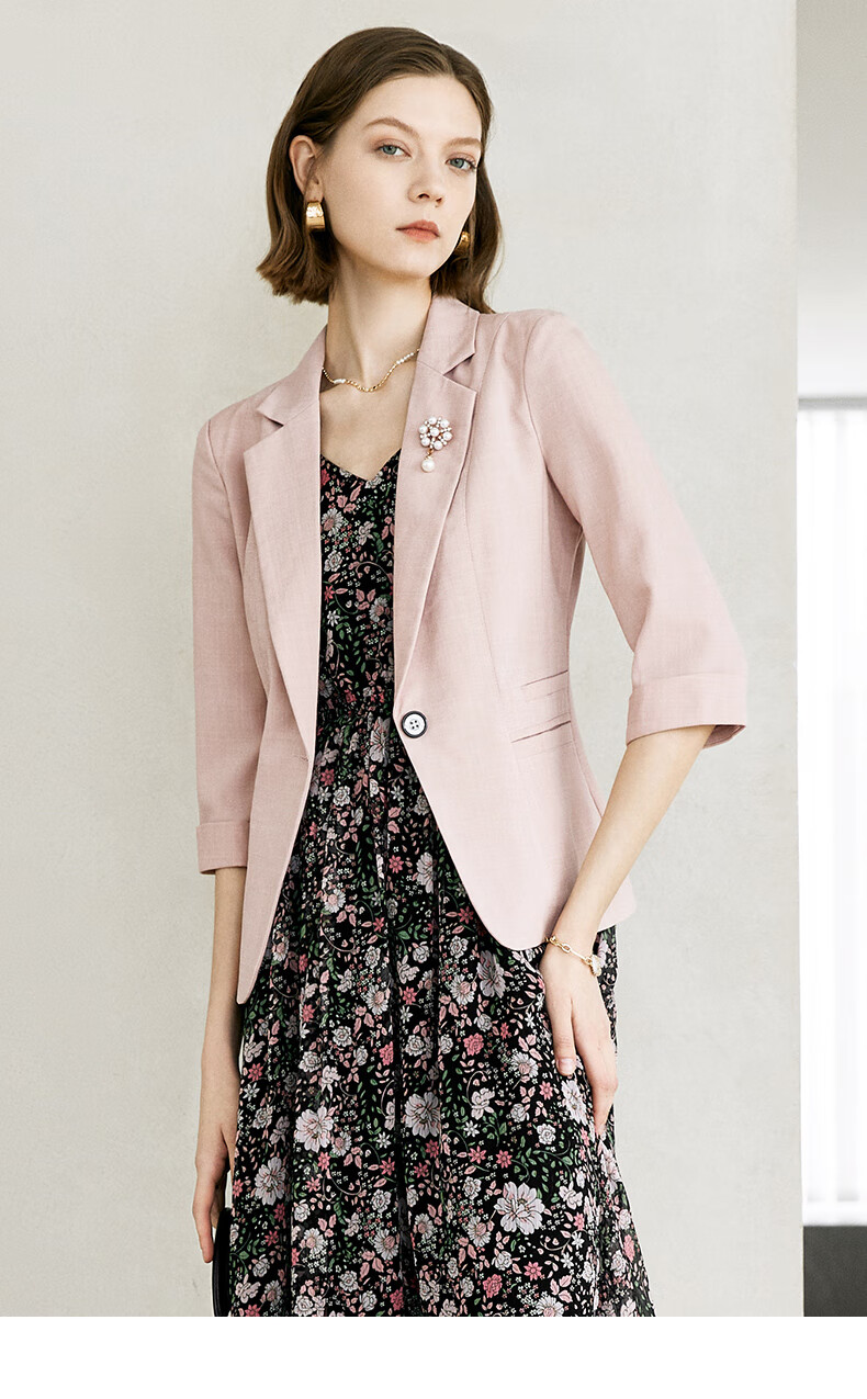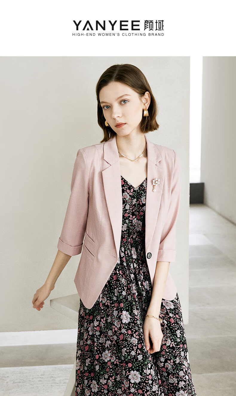 Yanyu Fashion Blazer Women's 2024 Summer Suit Simple Temperament Commuting Professional Thin Suit Pink 1 L/40