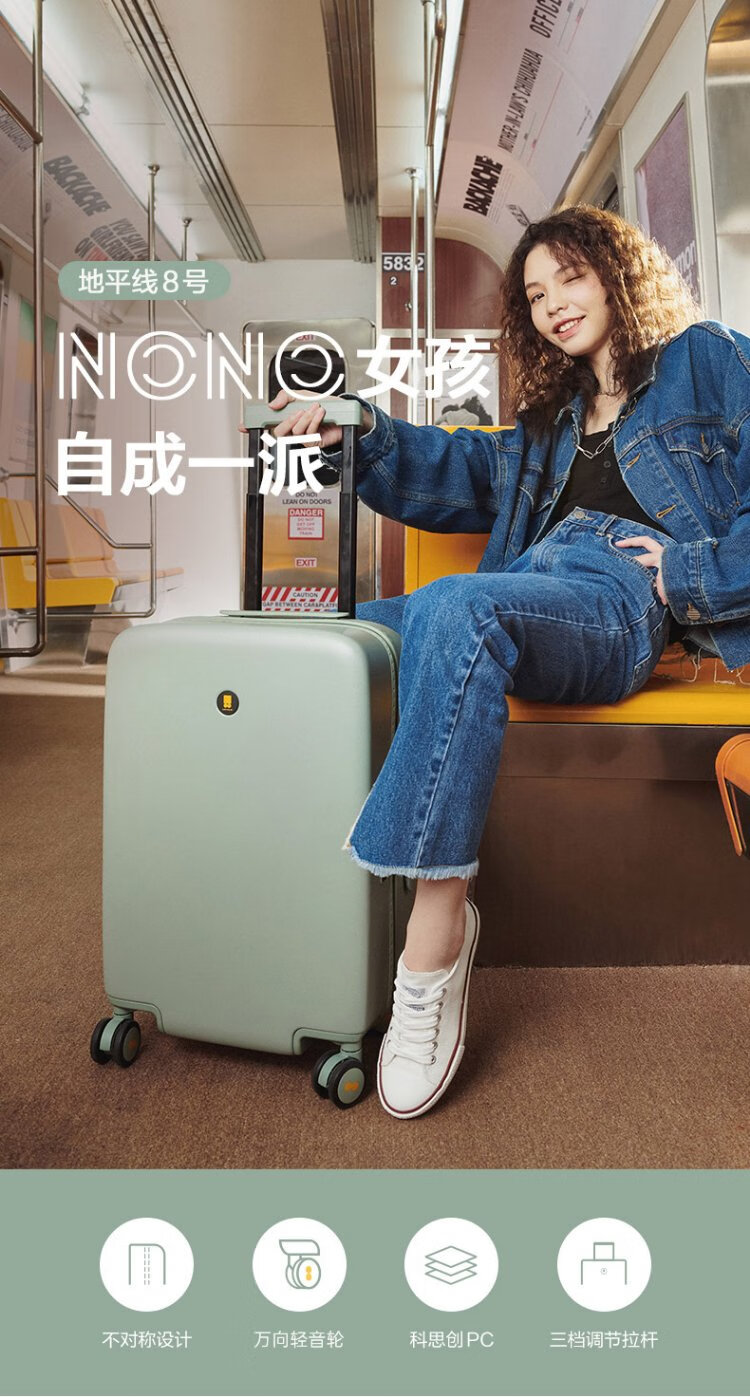 Horizon 8 (LEVEL8) suitcase, men's and women's coded suitcase, 24-inch Covestro PC trolley case NONO series, Eucalyptus green
