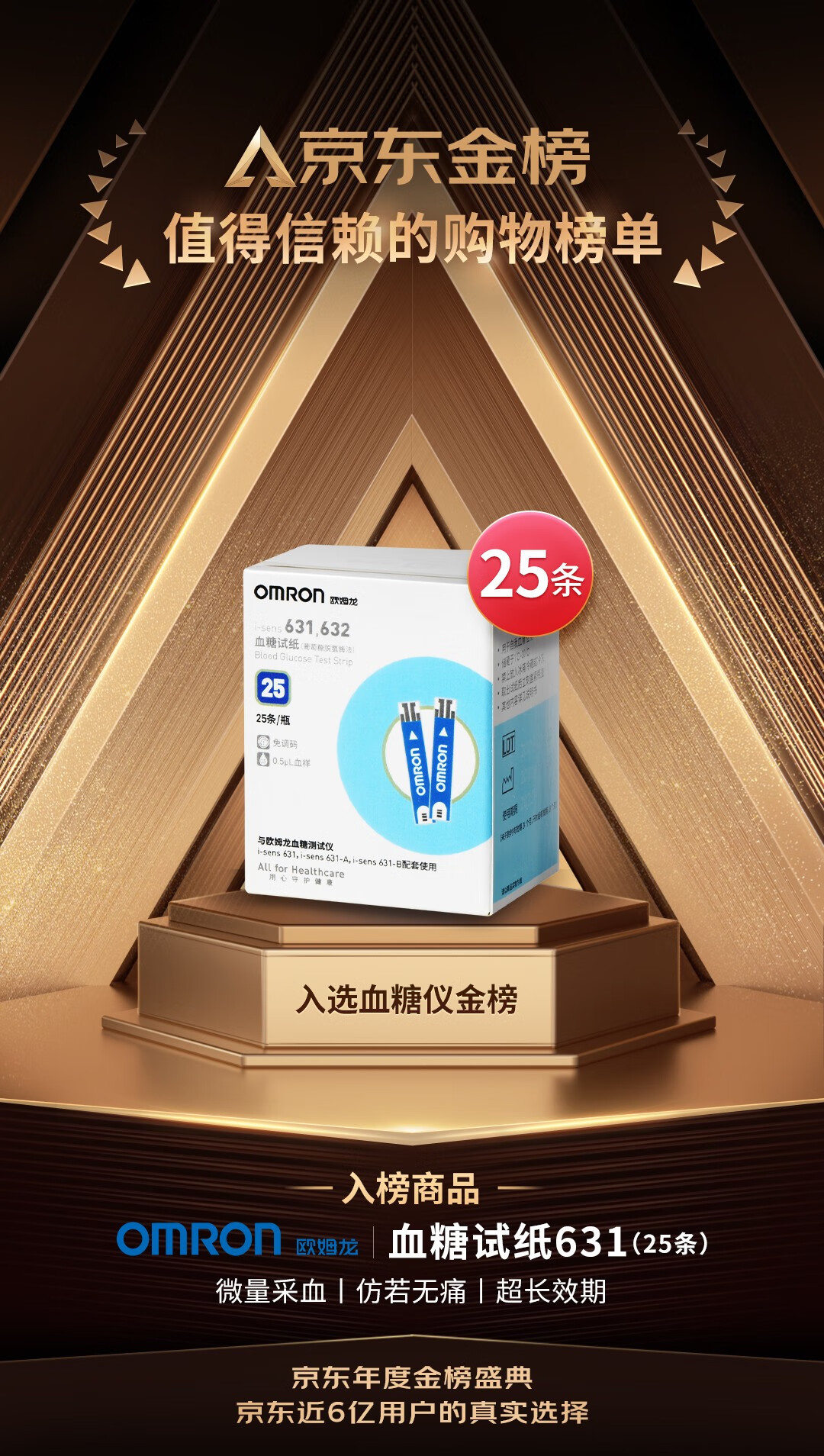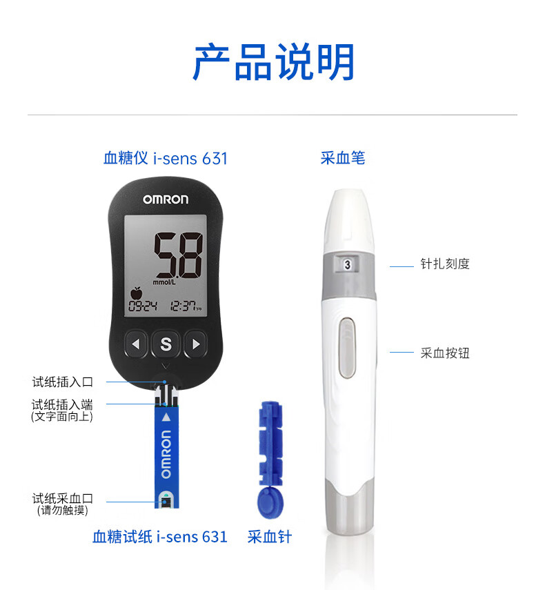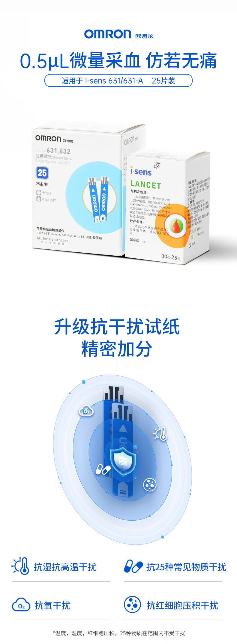 OMRON blood glucose test strips 631,632 (25 test strips + 25 needles) are suitable for 631/631-A blood glucose meters for home use