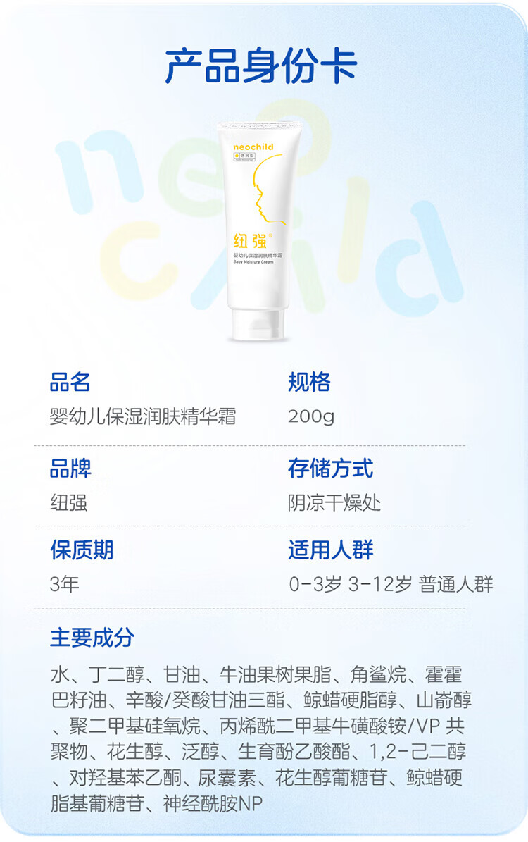 Niuqiang Children's Face Cream Autumn and Winter Highly Moisturizing Moisturizing Body Lotion Infant Moisturizing Moisturizing Essence Cream 200g