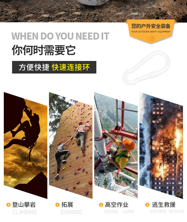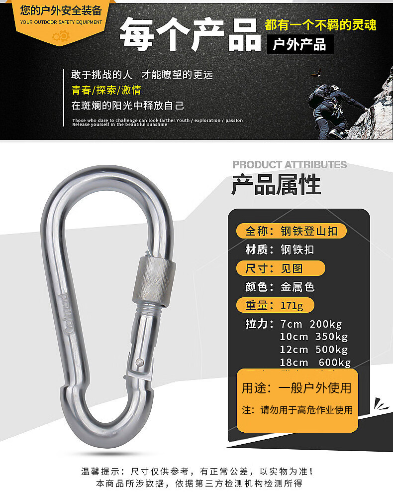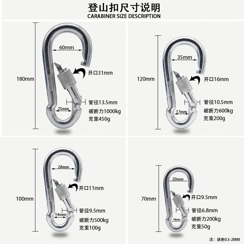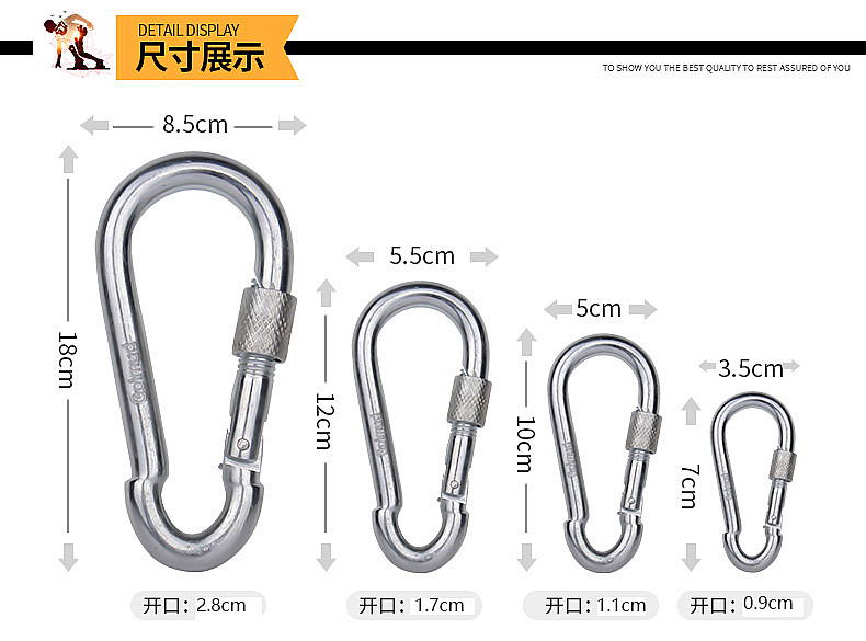Golmud safety hook carabiner insurance main lock dog chain key GM901 spring buckle 7cm*2 pcs
