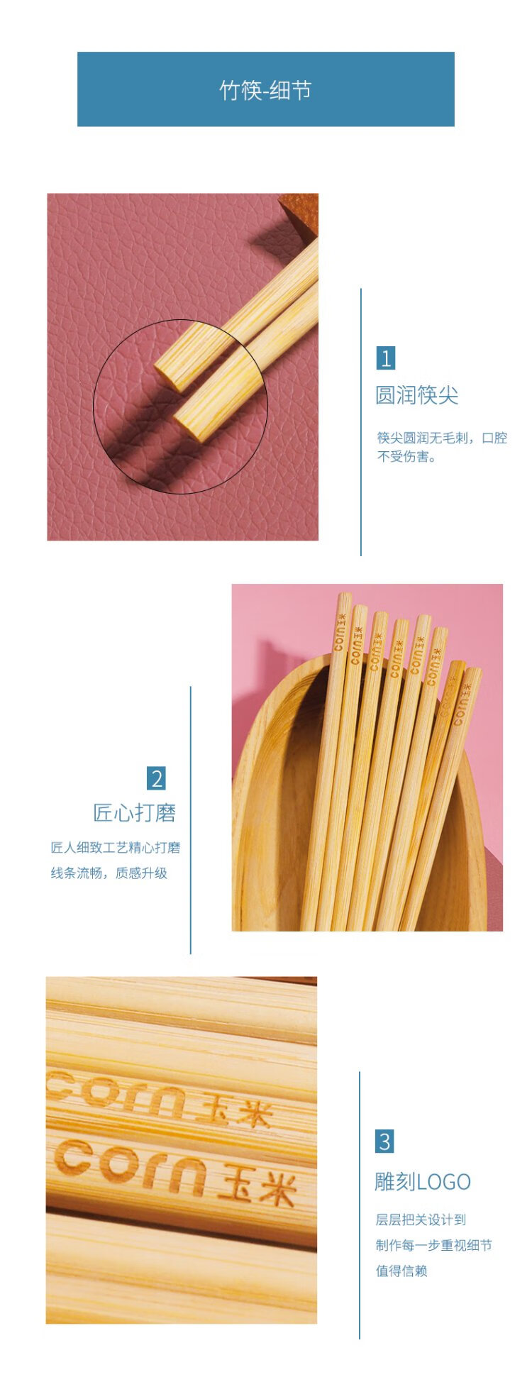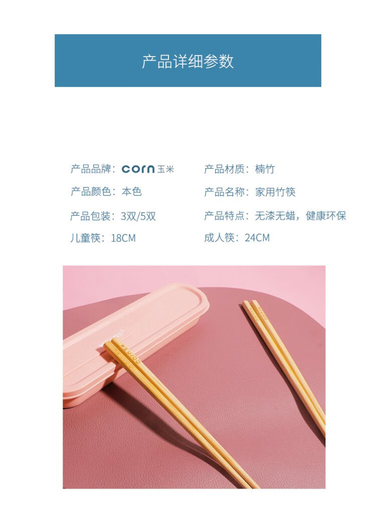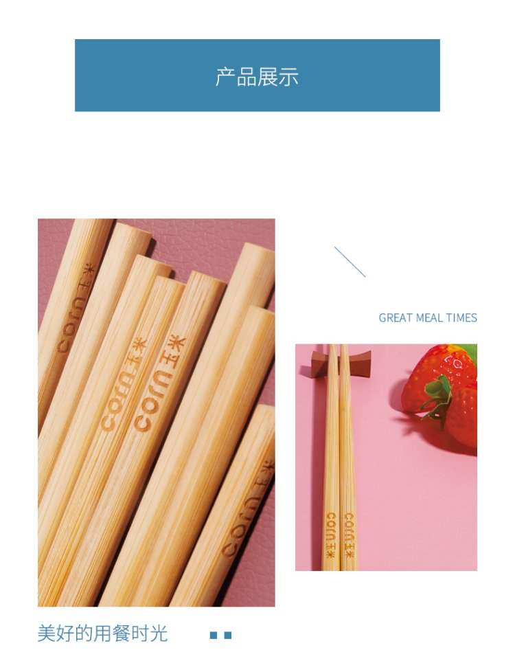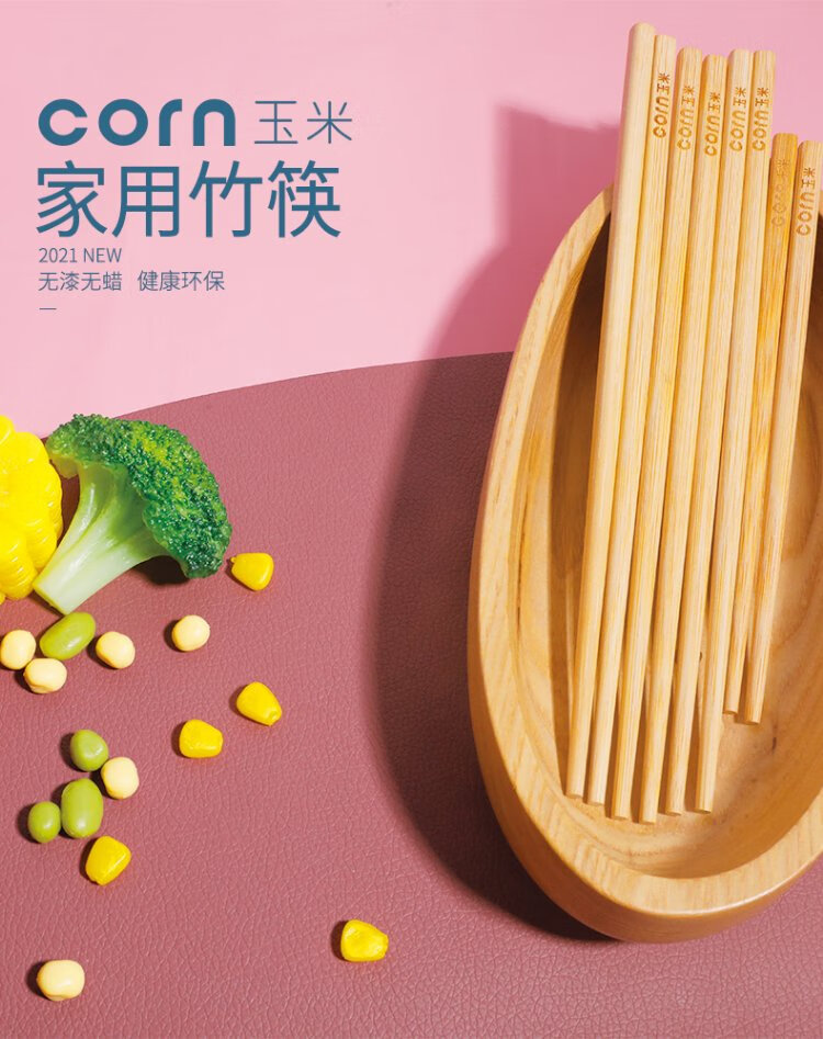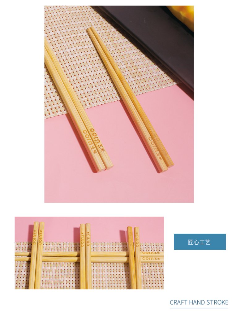 Corn Children's Bamboo Chopsticks 6 to 12 Years Old Second Stage Household Baby Special Student Chopsticks Unpainted Bamboo 4 Chopsticks Natural