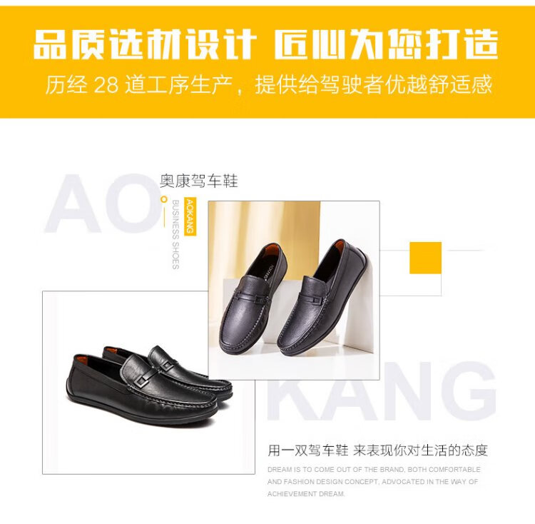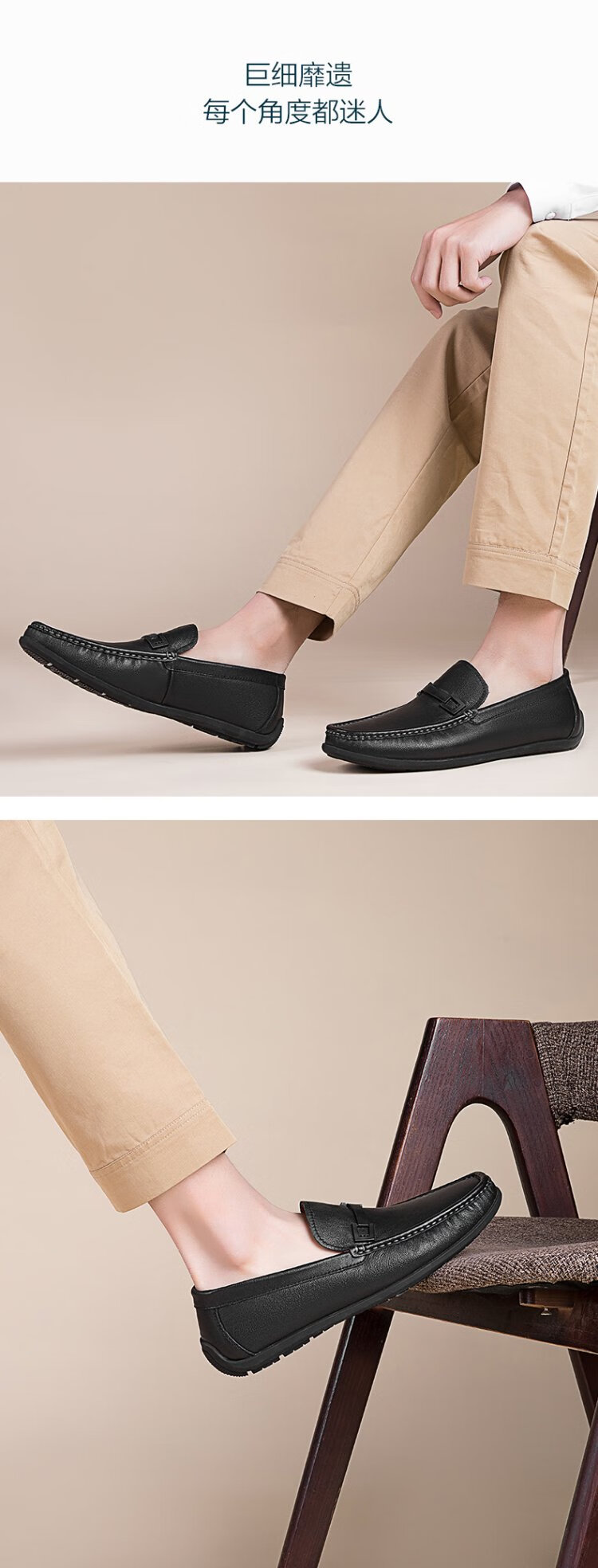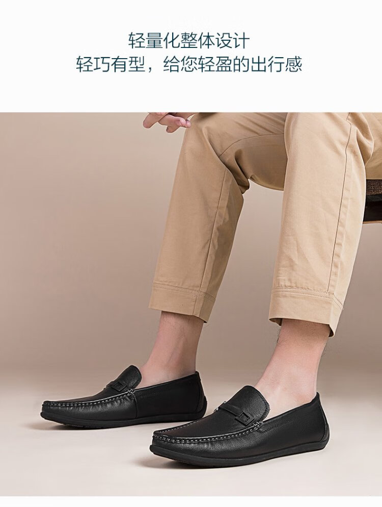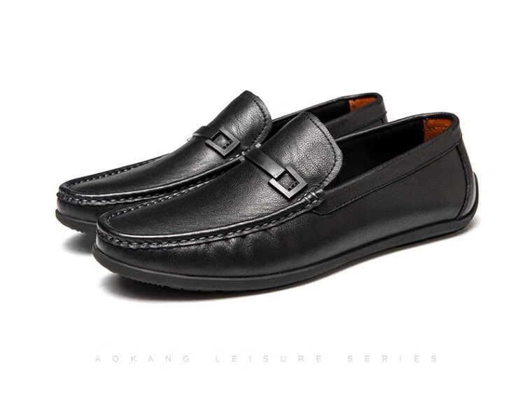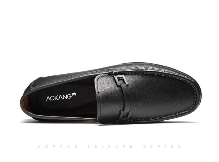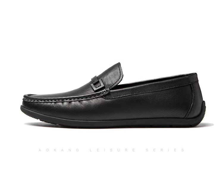 Aokang (Aokang) business casual leather shoes, comfortable soft-soled driving shoes, low-top slip-on lazy loafers, black size 40