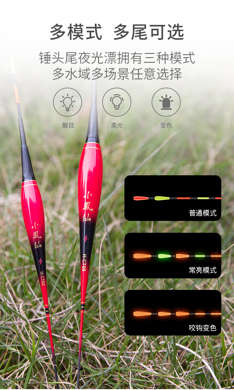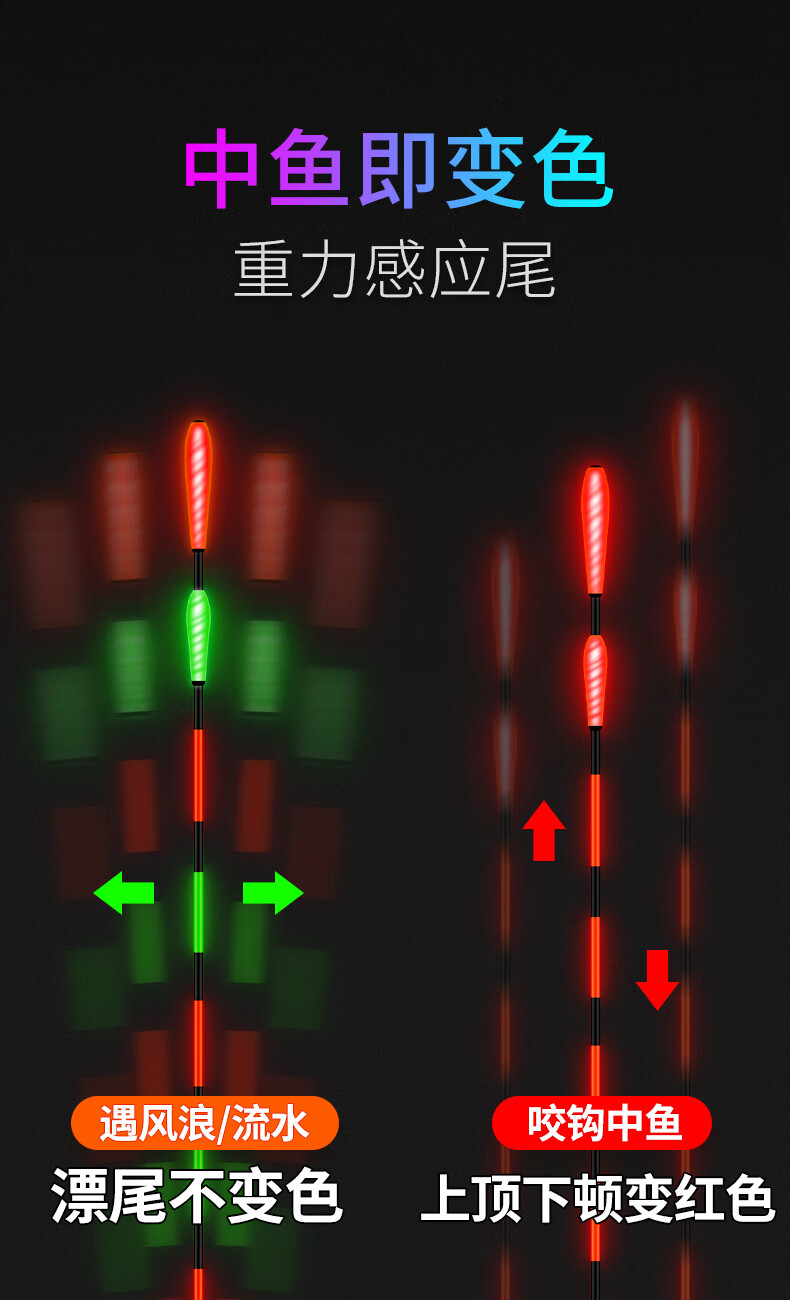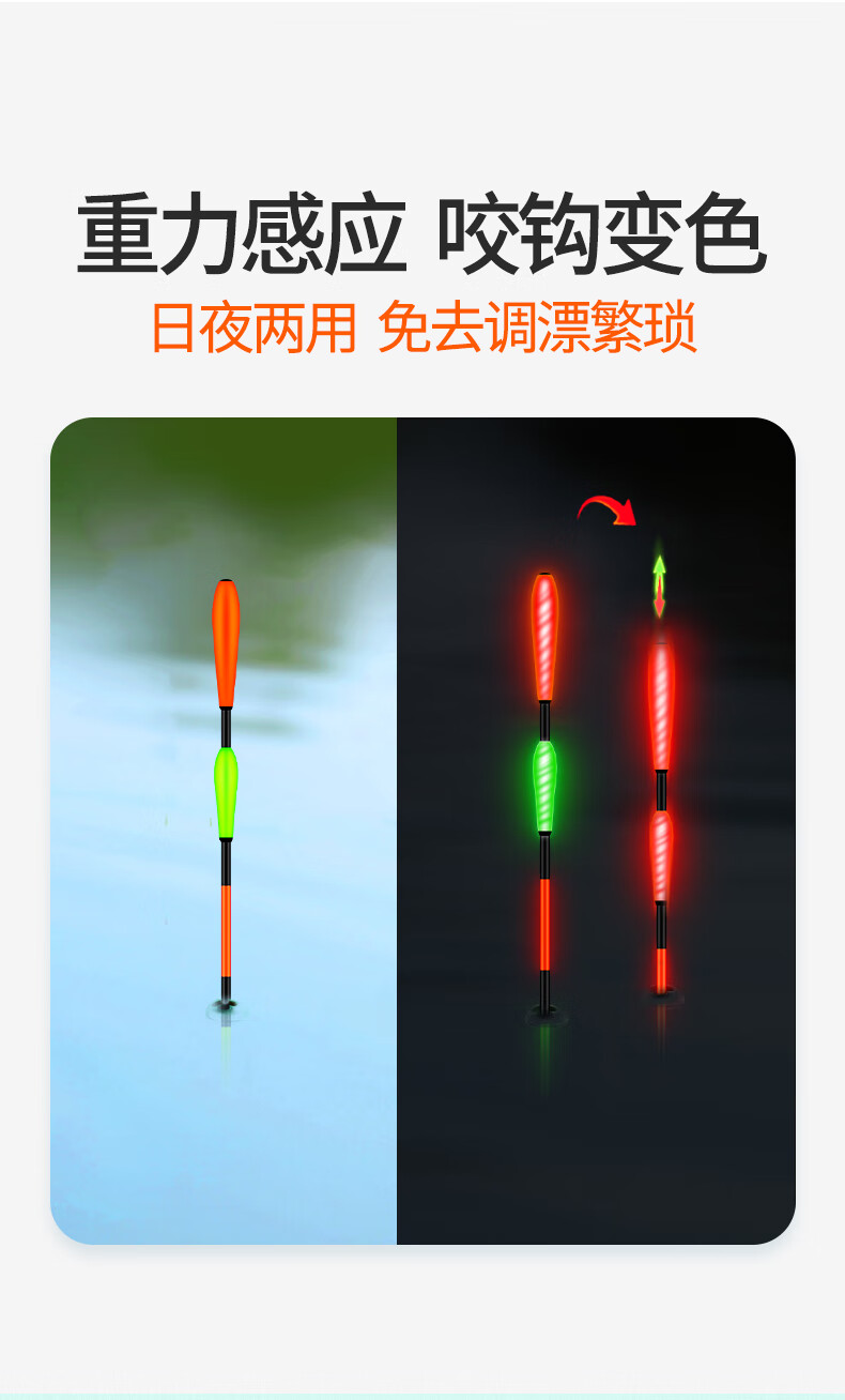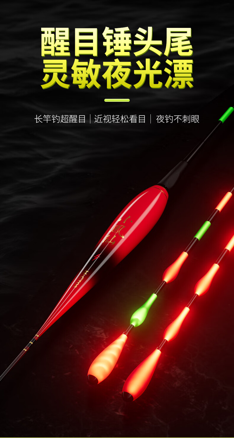 Xiaofengxian bites the hook day and night, changes color, luminous float, head and tail light-emitting float, night fishing electronic float, crucian carp float, bold, eye-catching, myopia float