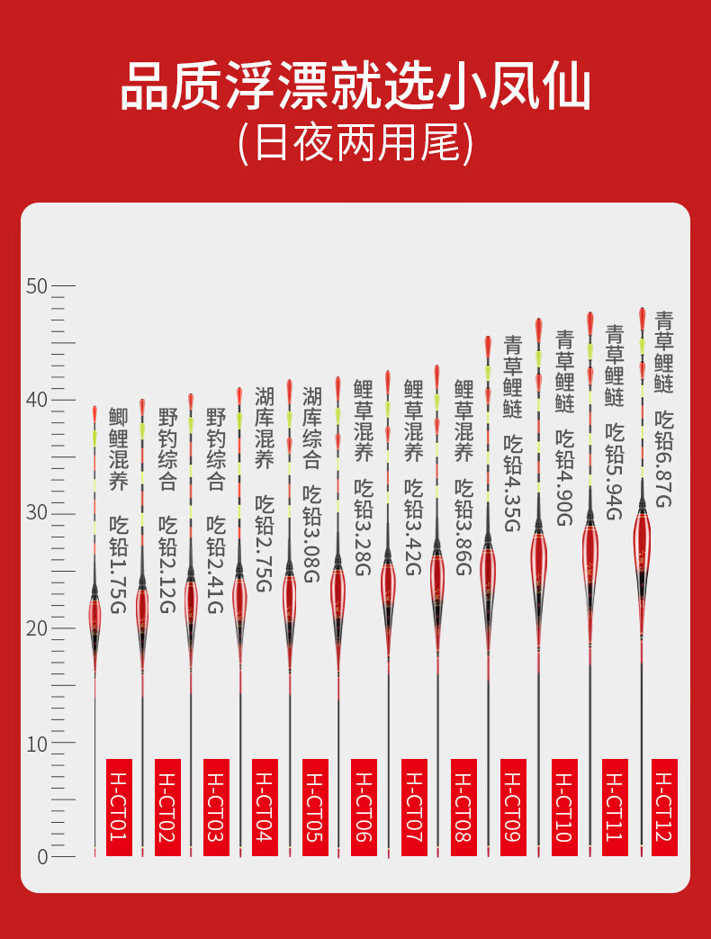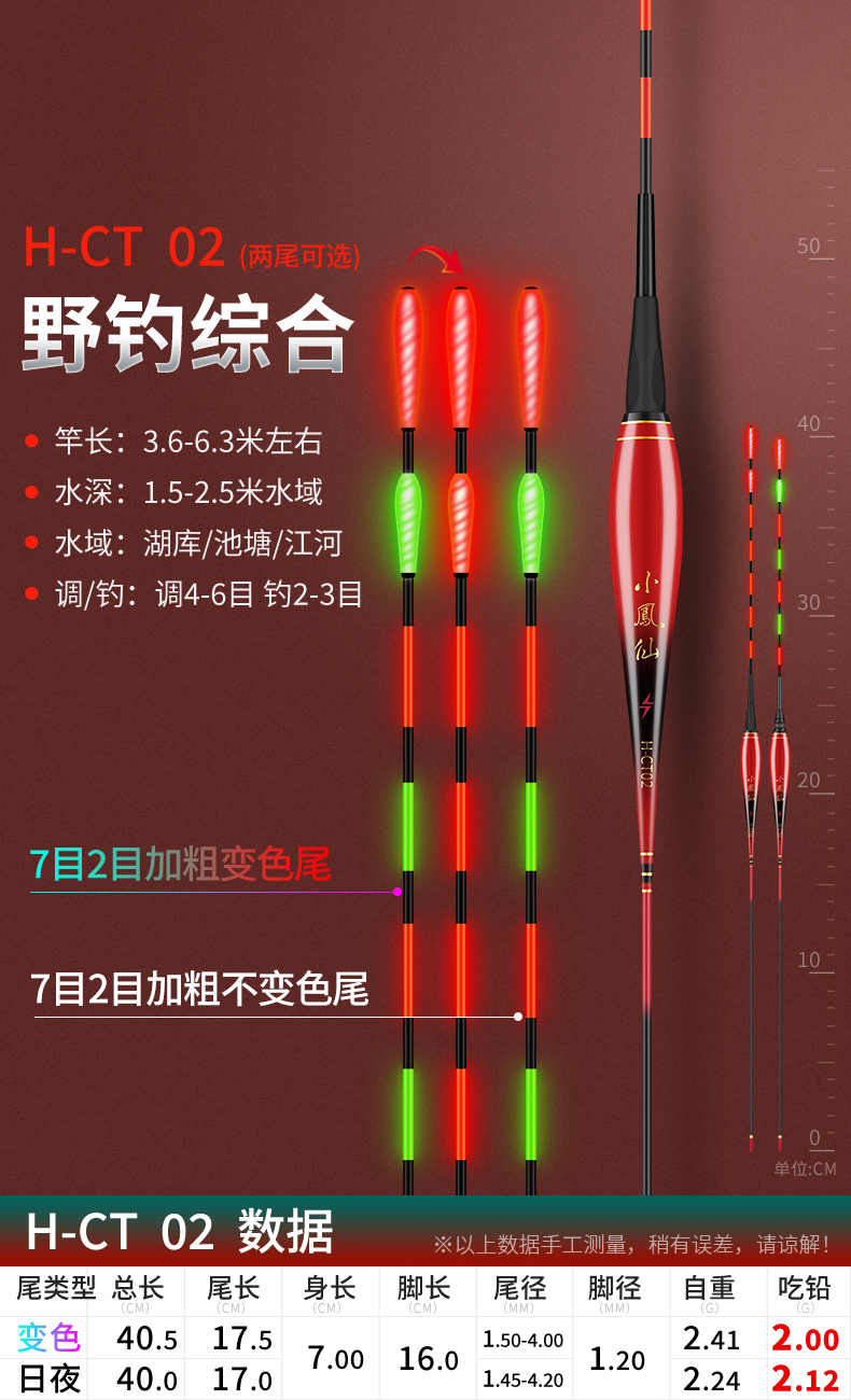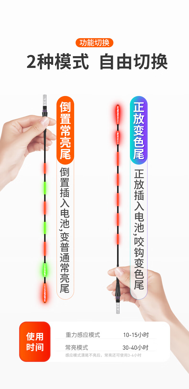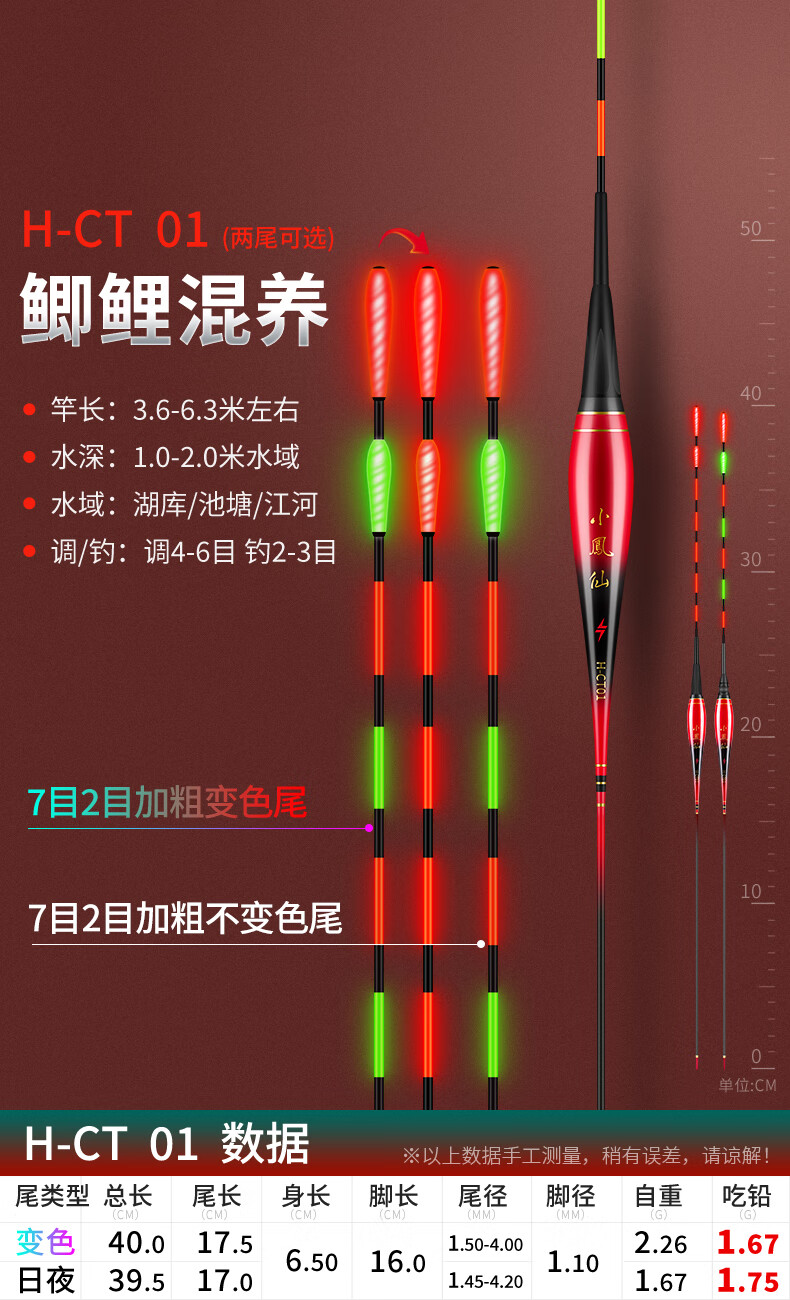 Xiaofengxian bites the hook day and night, changes color, luminous float, head and tail light-emitting float, night fishing electronic float, crucian carp float, bold, eye-catching, myopia float