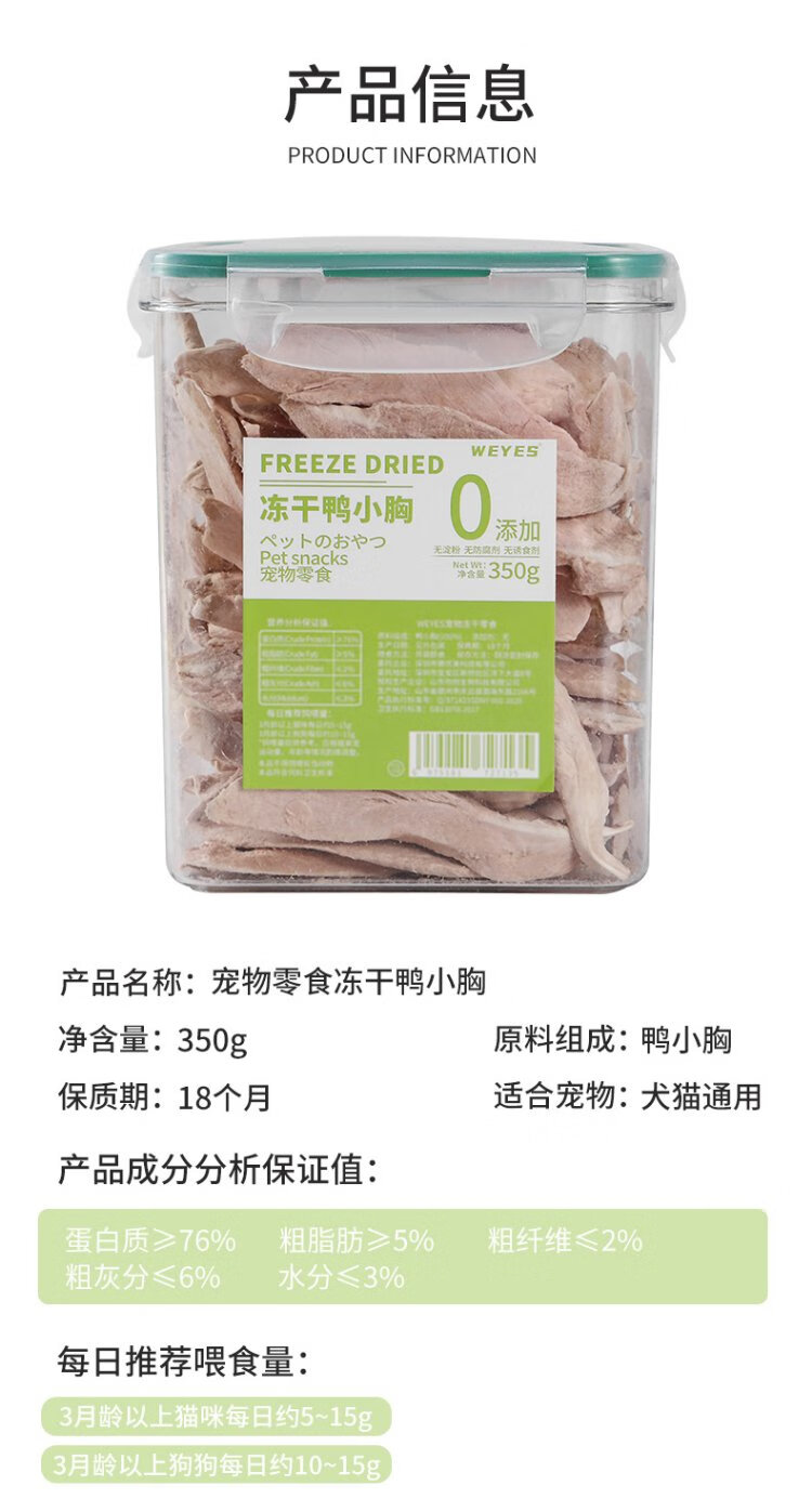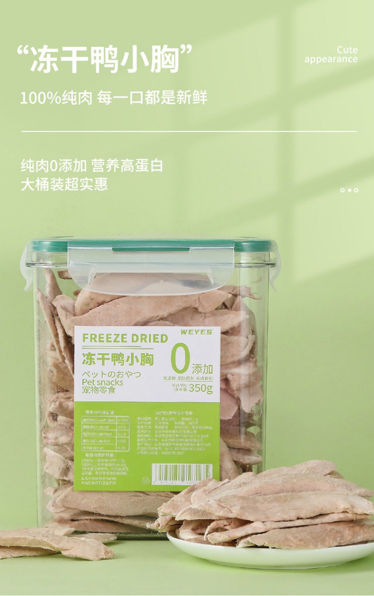 WEYES freeze-dried duck breast 350g barreled pet cat and dog snacks gift bag hair and cheek nutrition