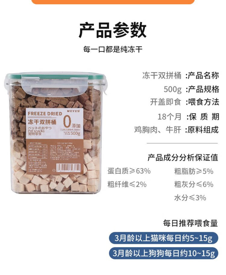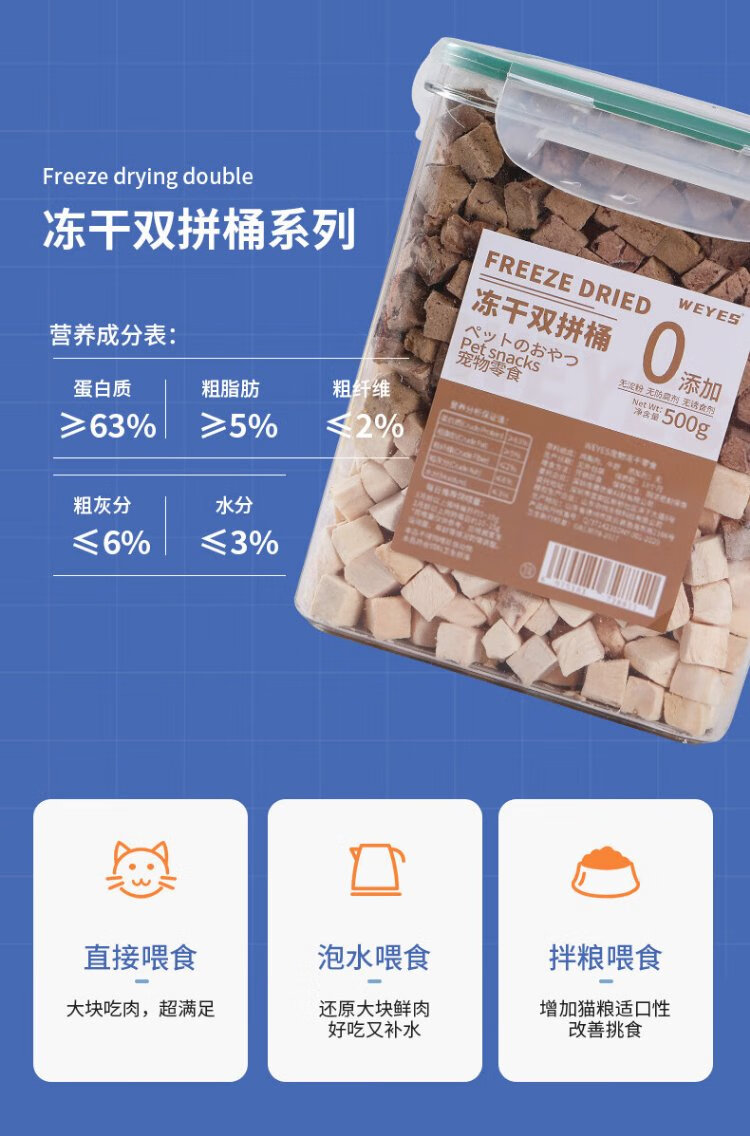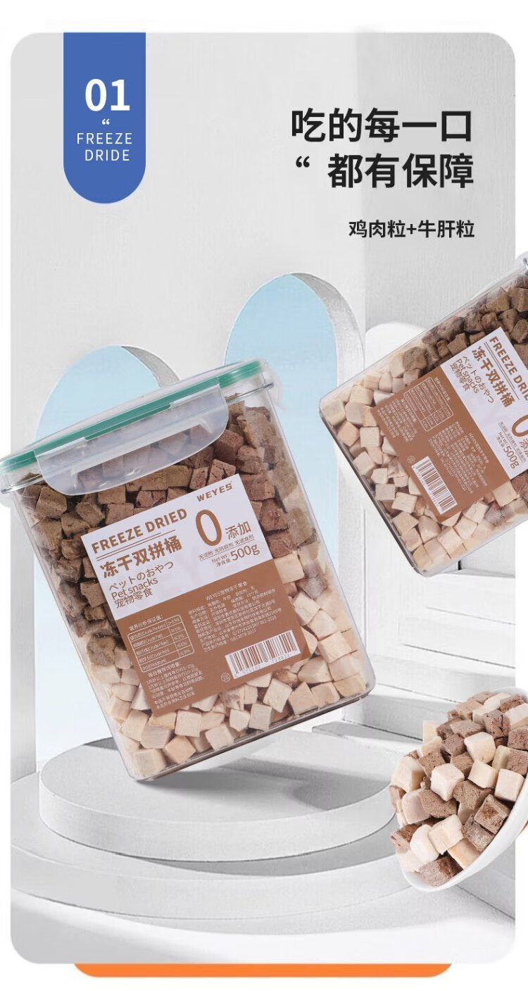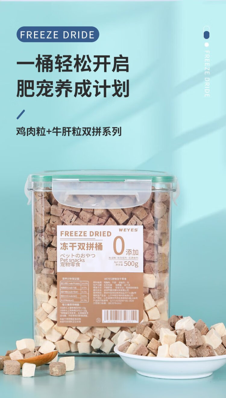 WEYES freeze-dried chicken and beef liver granules 500g barreled pet cat and dog snacks freeze-dried chicken breast hair gills nutrition