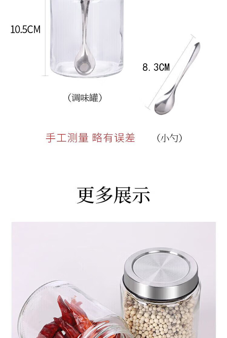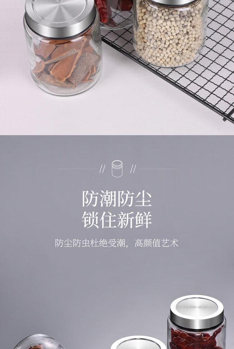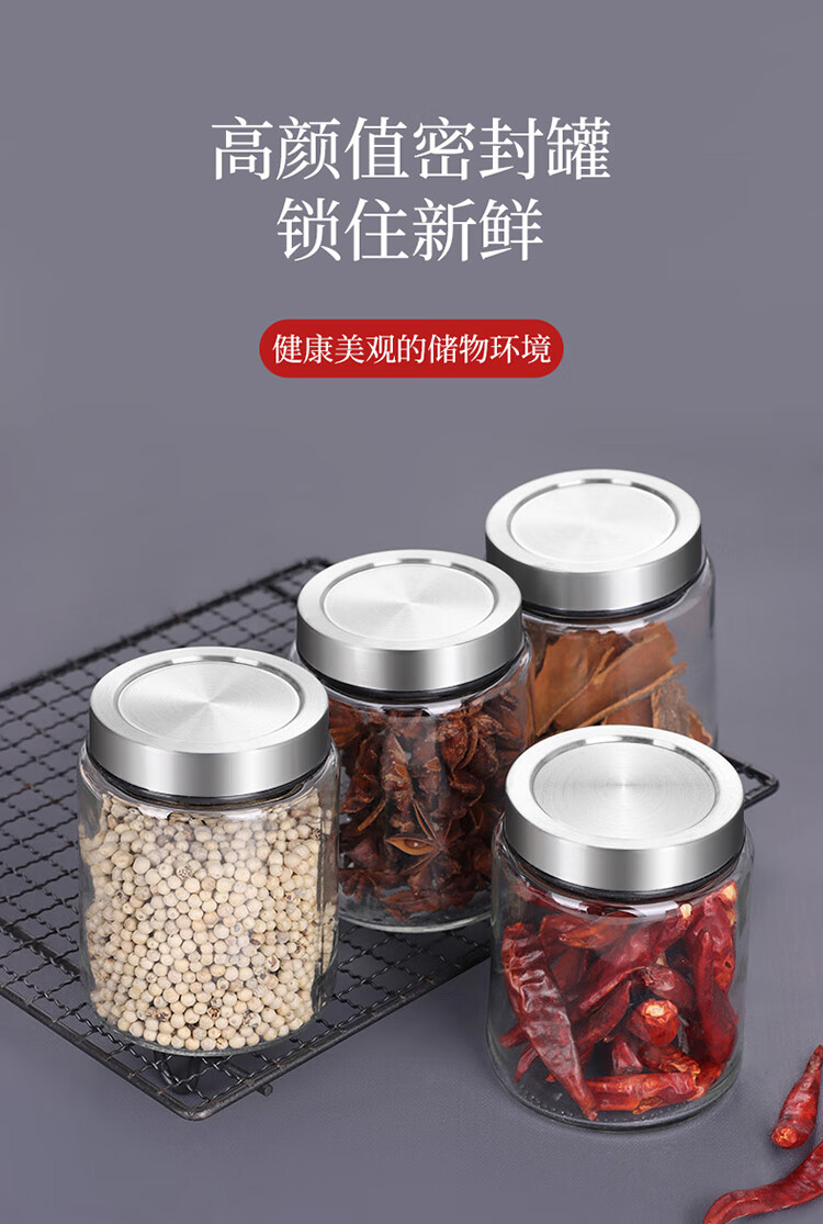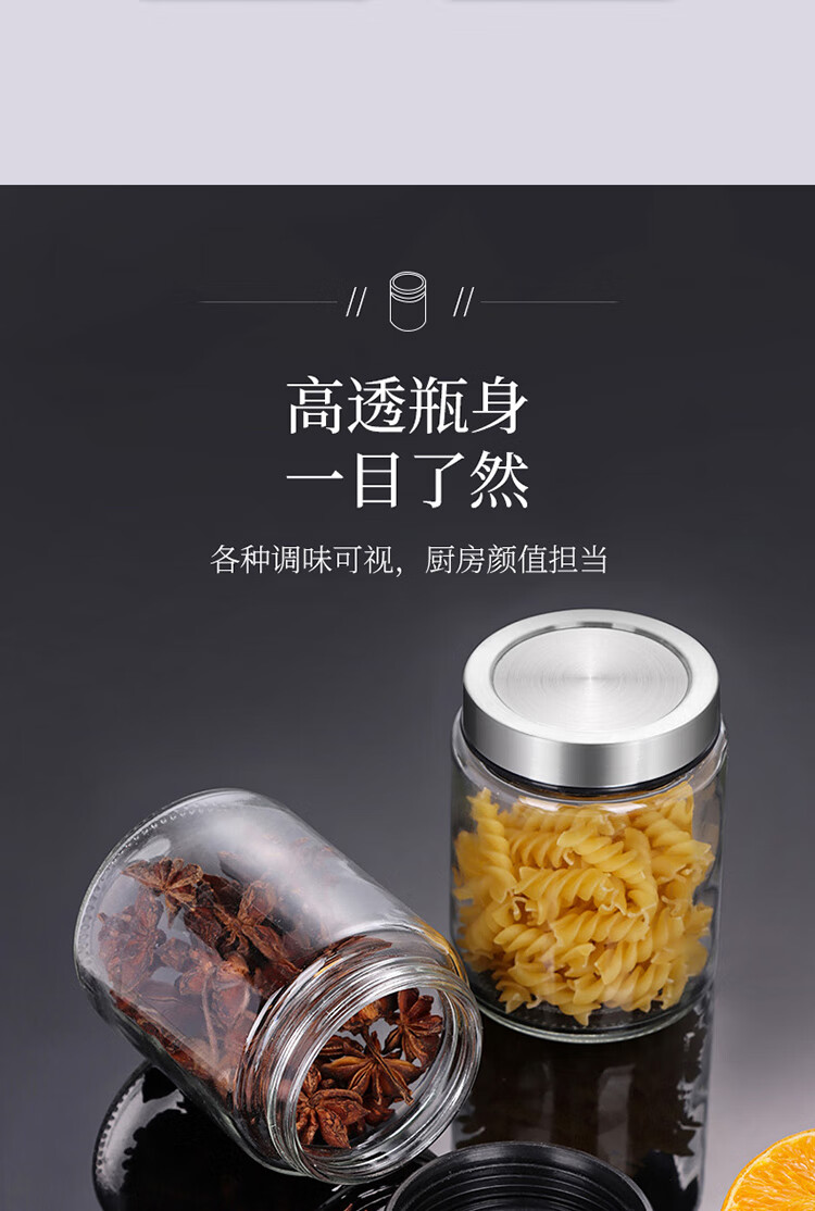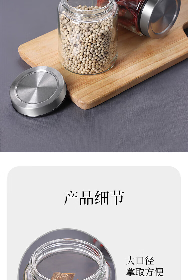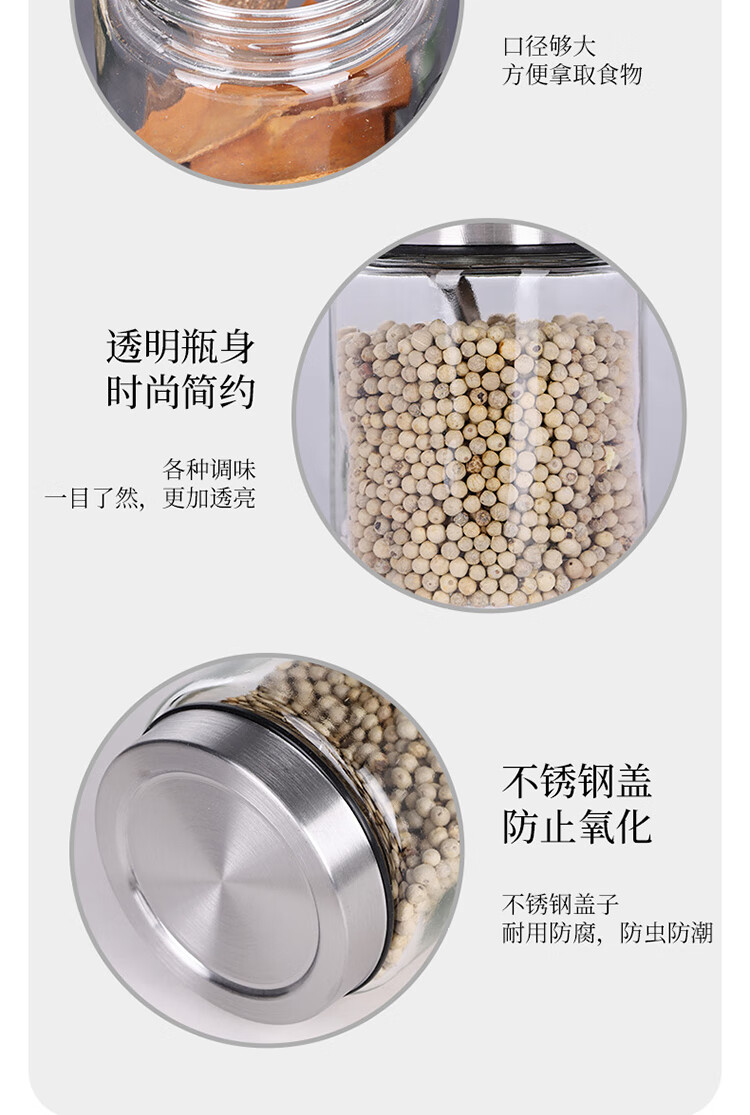Baijie sealed seasoning jar seasoning box glass seasoning bottle set kitchen salt jar spice moisture-proof stainless steel storage box