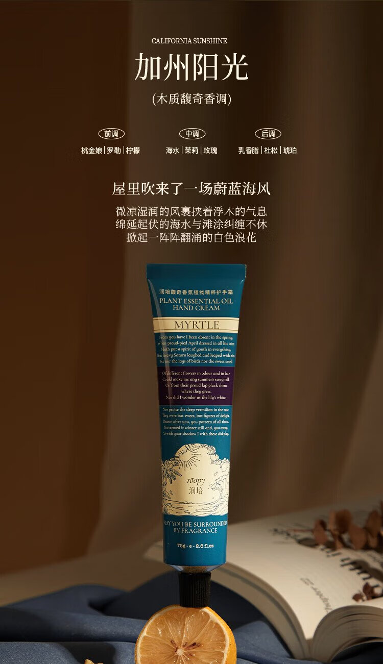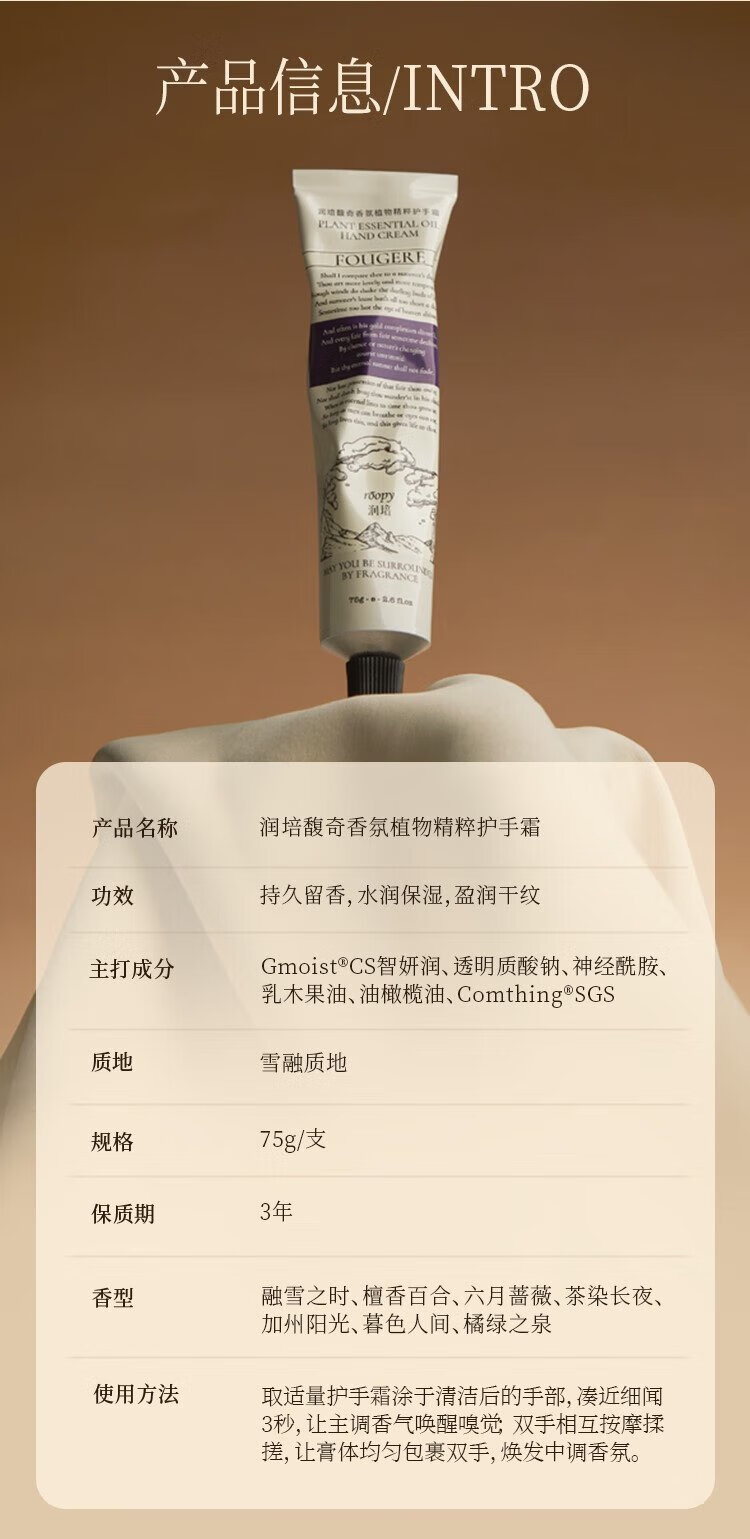 Runpei Fragrance Hand Cream Moisturizing and Hydrating Plant Extract Anti-Drying Birthday Gift for Women Sandalwood Lily 75g