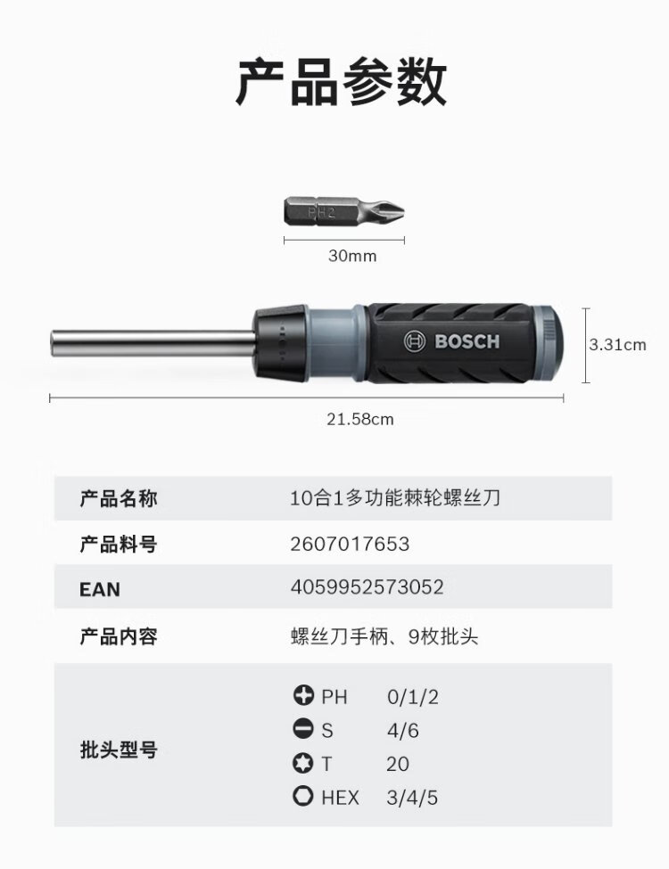 Bosch Bosch 10-in-1 multifunctional ratcheting screwdriver with magnetic lever, three-speed power knob storage and integrated handle