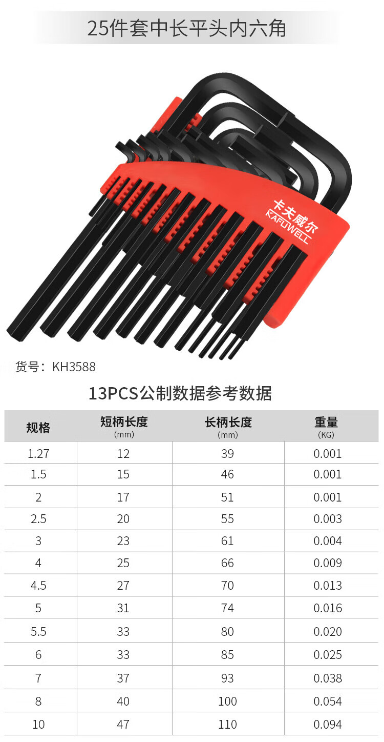 Kraftwell flat head hexagonal wrench set 25-piece set metric and inch medium length bicycle wrench screwdriver KH3588