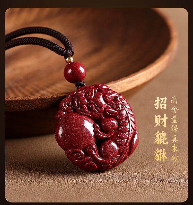 Shi Chuan Baishi Cinnabar Pendant Pixiu Peaceful Buckle Zodiac Year Purple Gold Sand Amulet Pendant Men and Women Necklace Birthday Gift