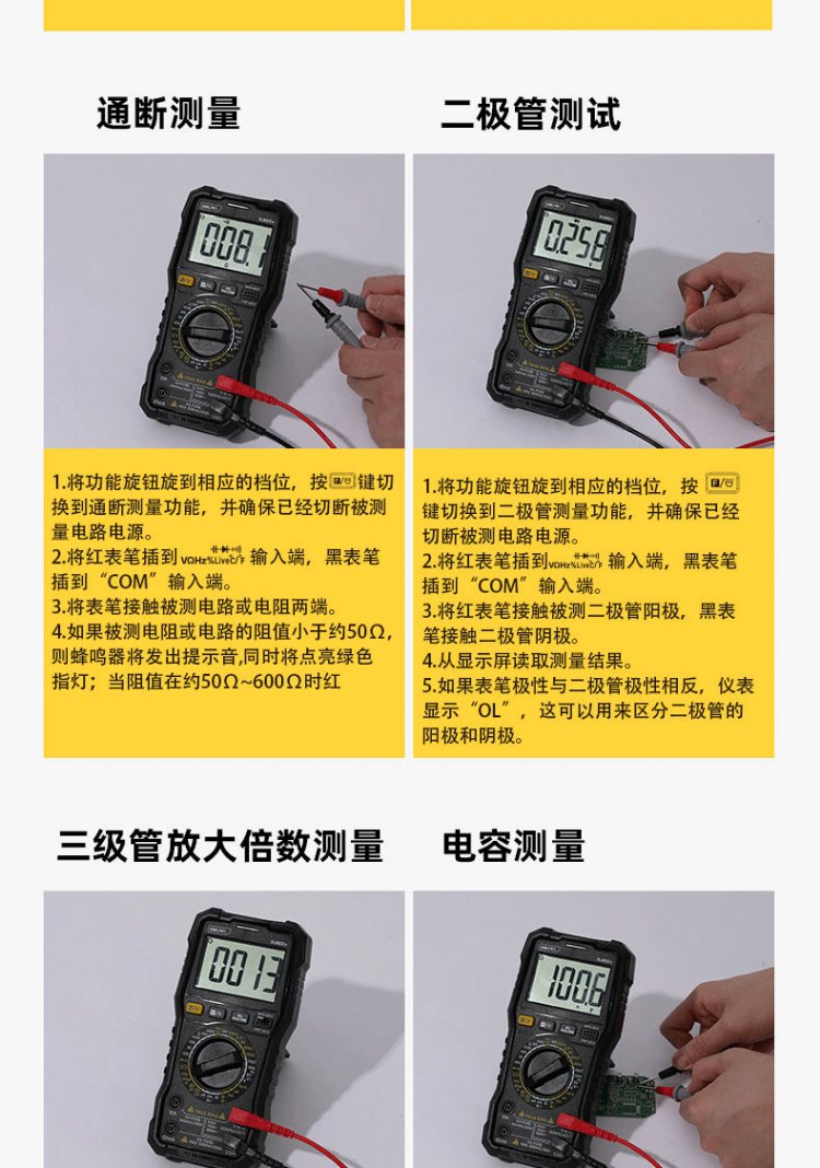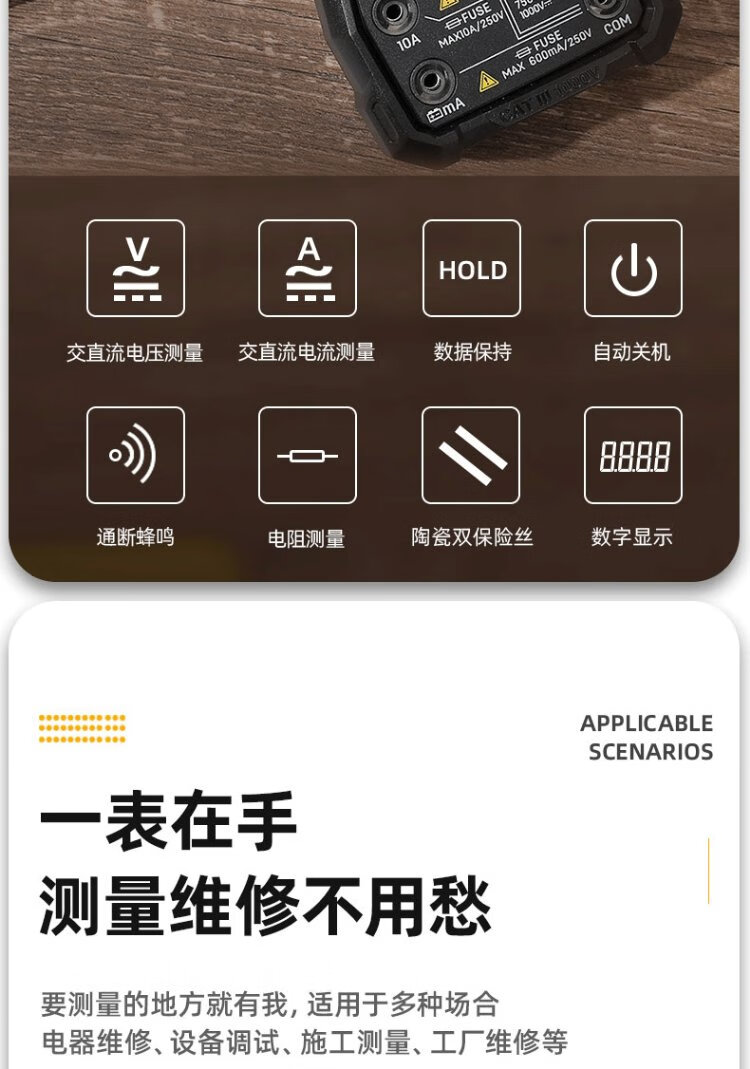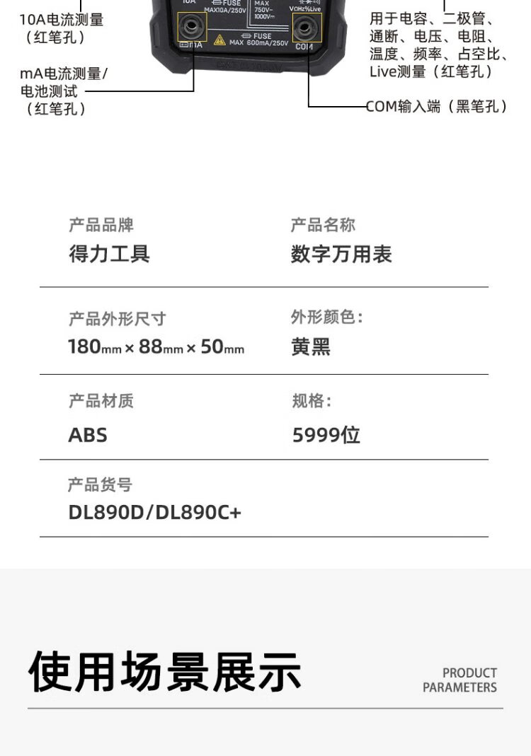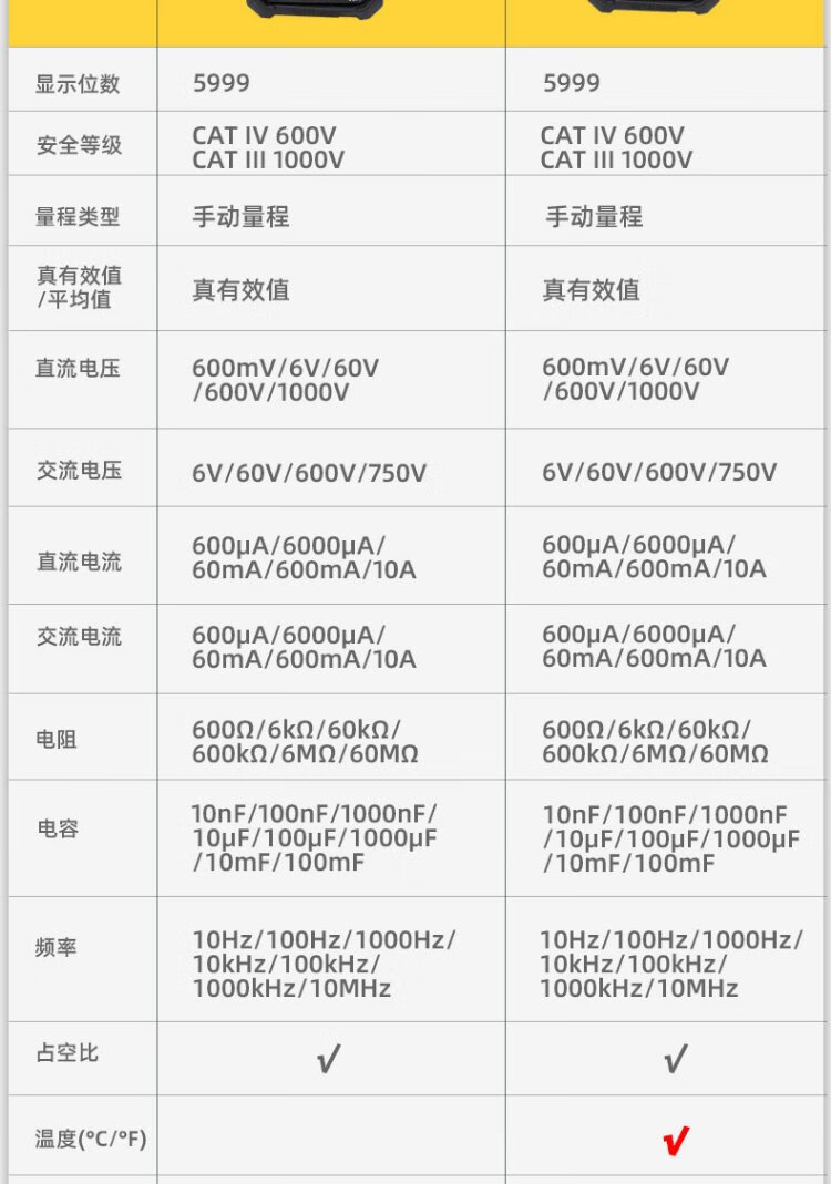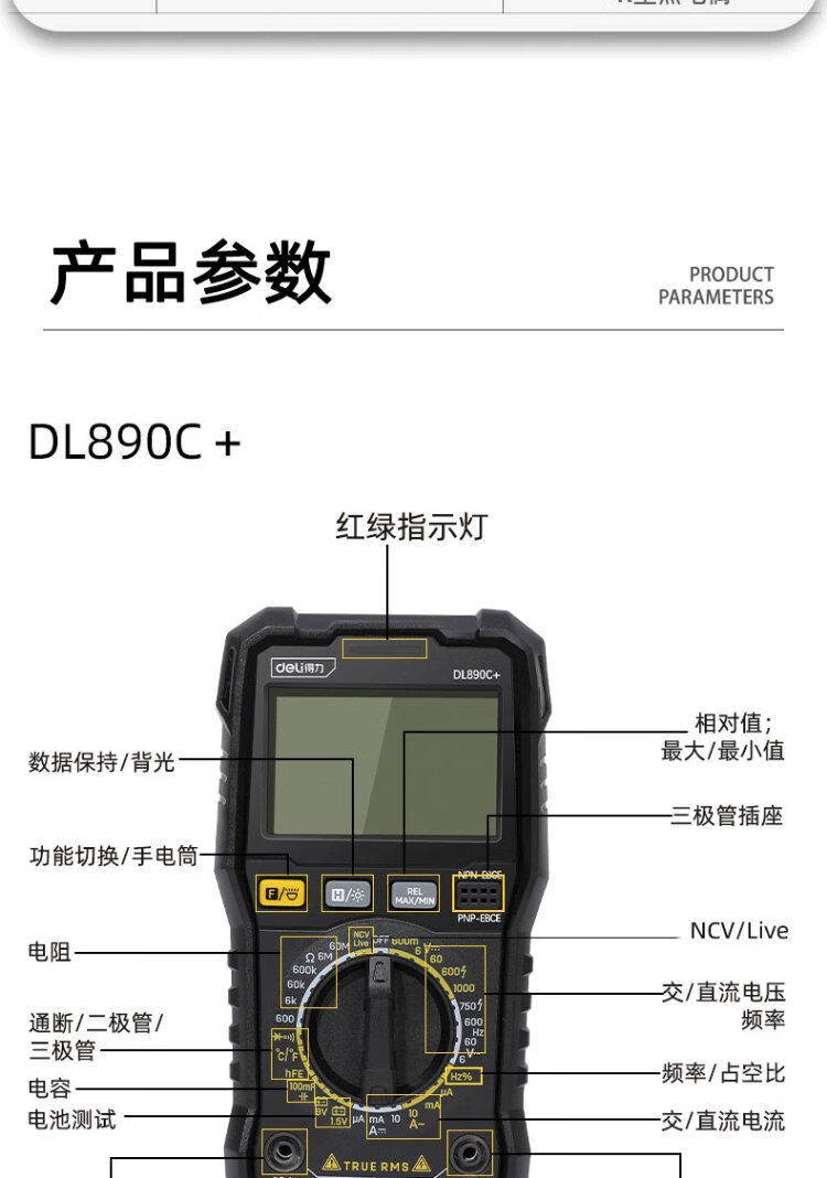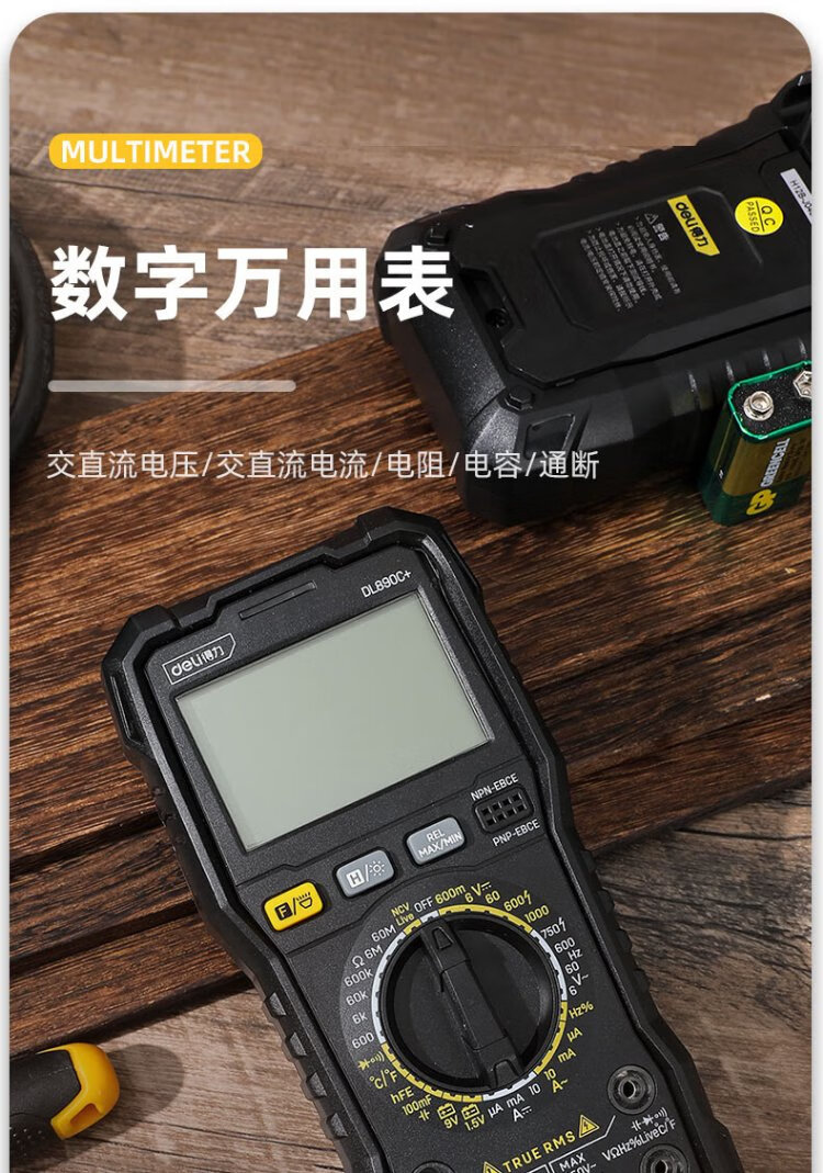 Deli multimeter electrician special digital multimeter household multimeter ammeter 5999 digit temperature test