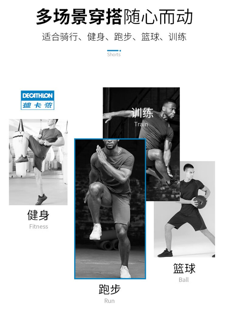 Decathlon shorts men's sports quick-drying pants aerobic loose training fitness running can be worn in all seasons 2432297 classic black-L