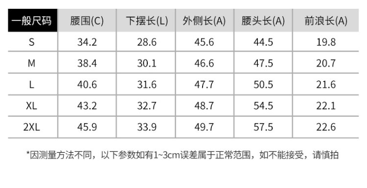 USA(inch) 28-30 30-32 32-34 34-38 38-42