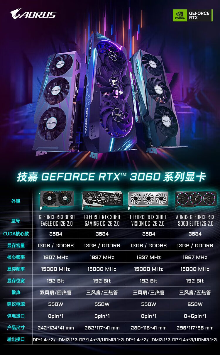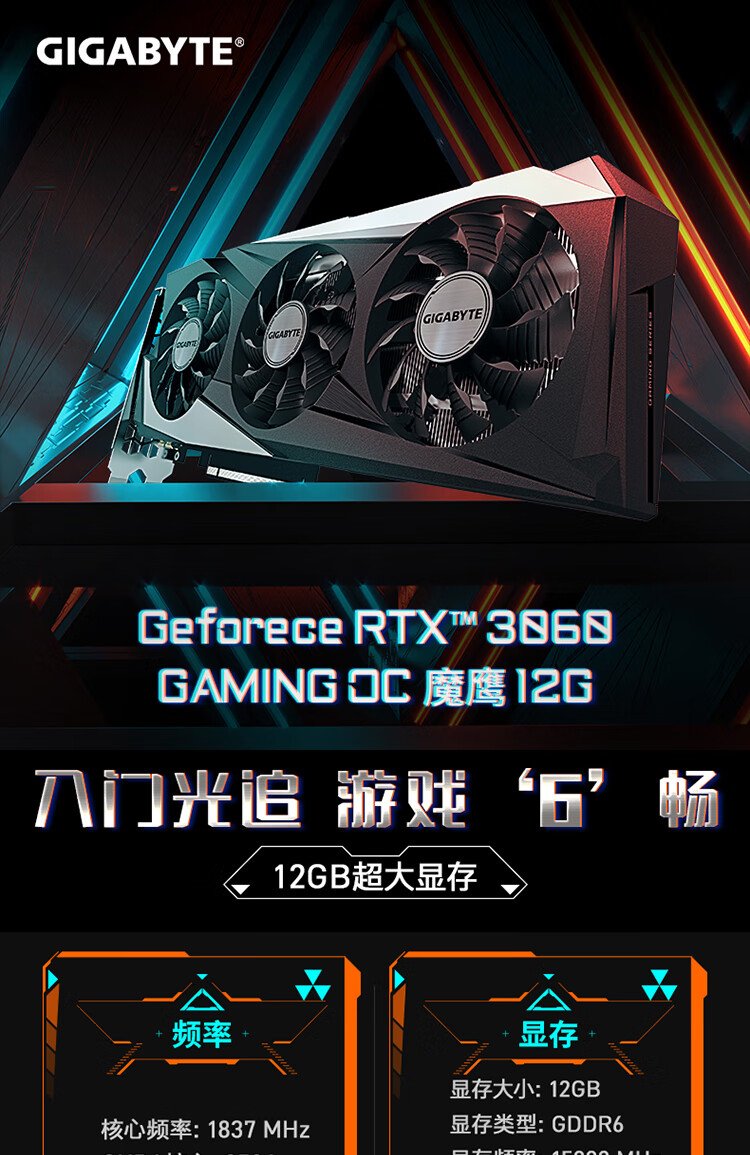 GIGABYTE GeForce RTX 3060 GAMING OC 12G 2.0 version e-sports game design smart learning computer independent graphics card supports 4K