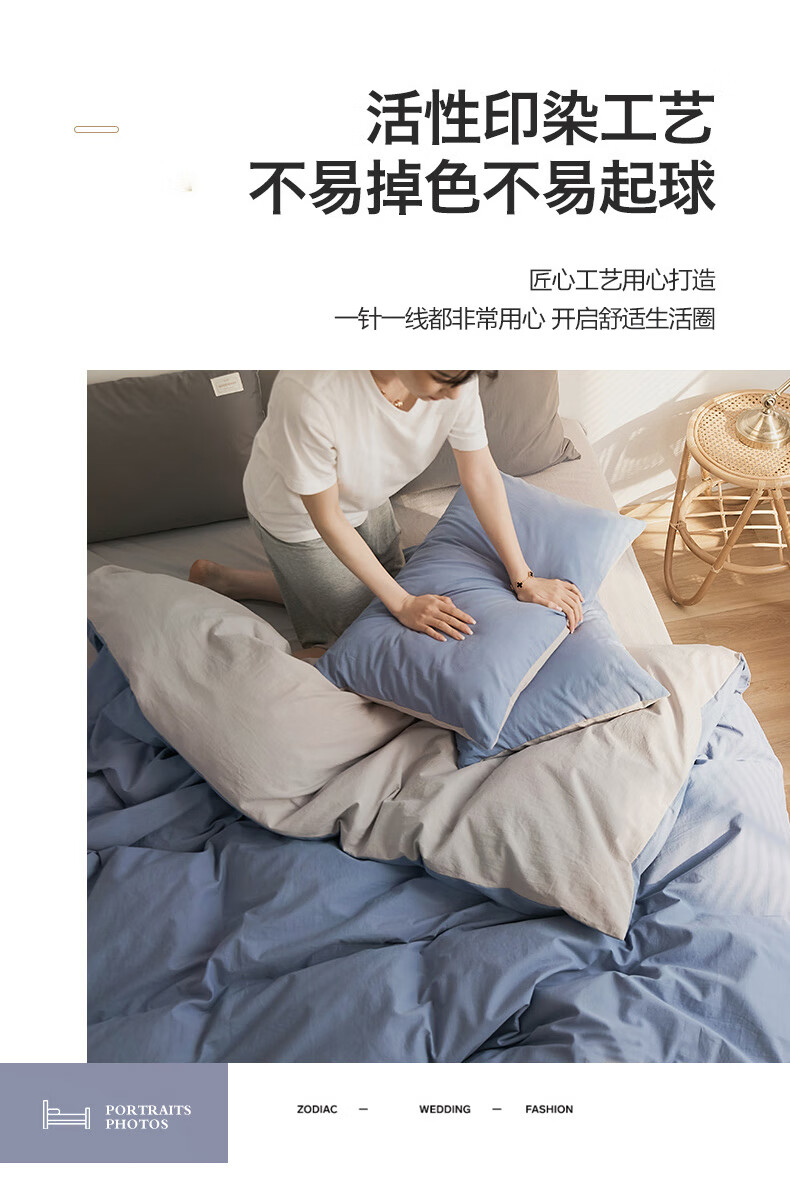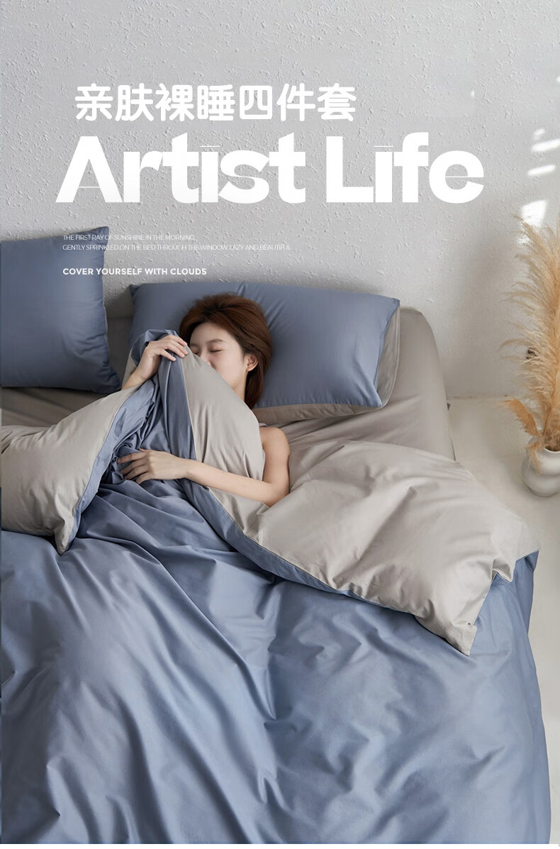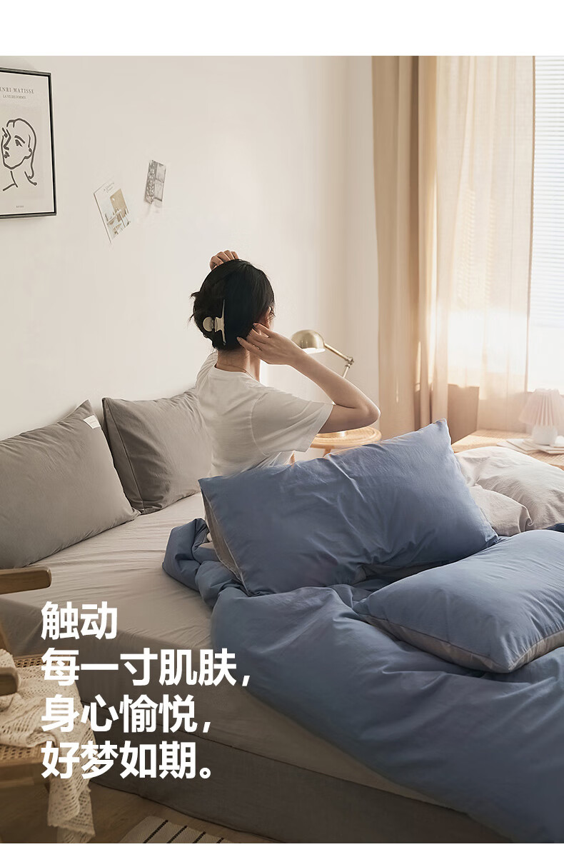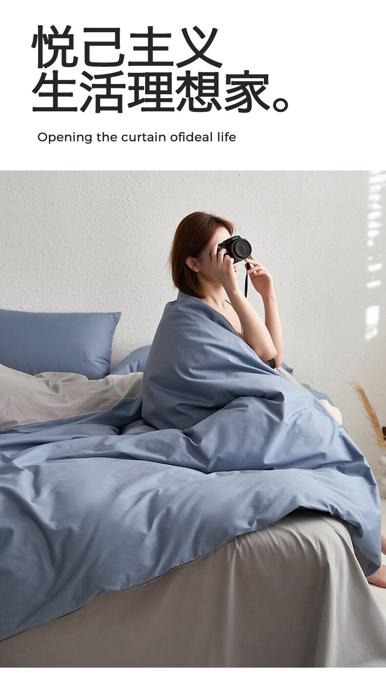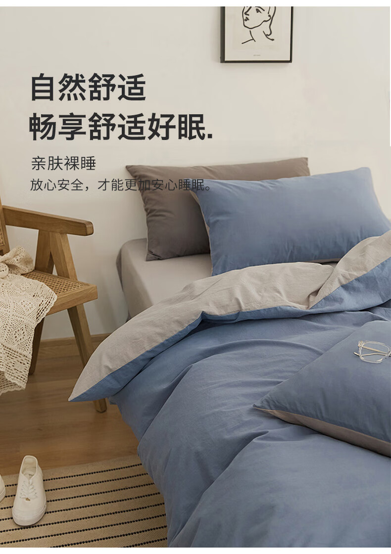 Nanjiren skin-friendly brushed four-piece set, washable bedding set, suitable for 1.5/1.8m sheets, quilt cover 200*230cm