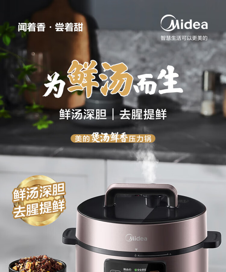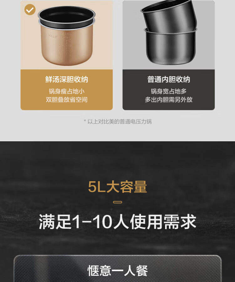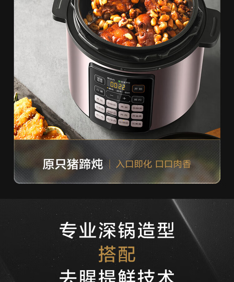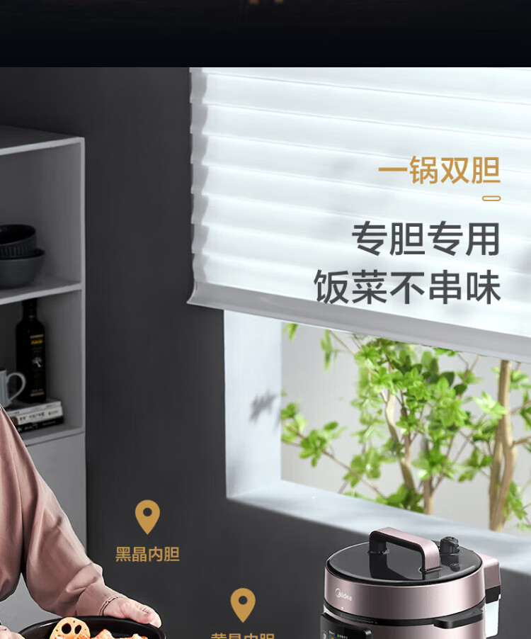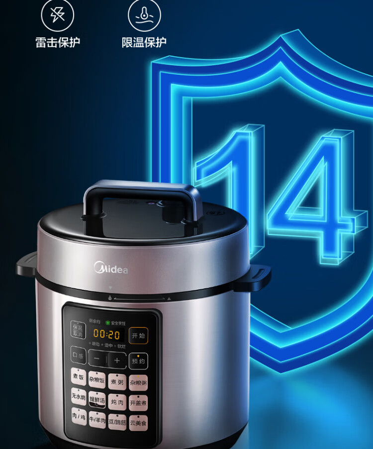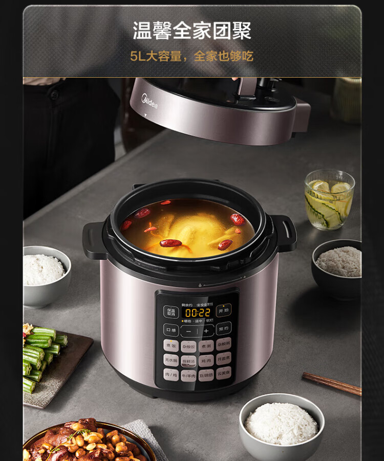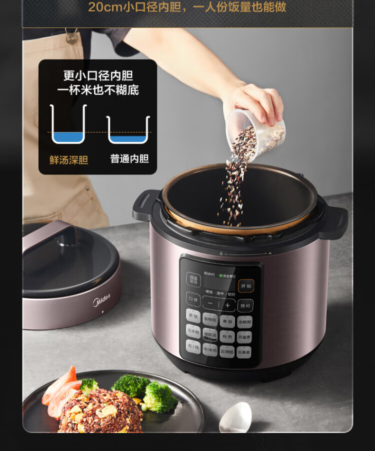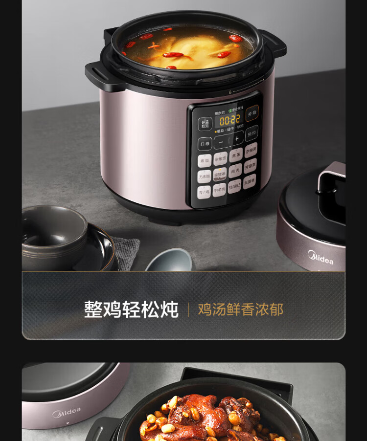 Midea deep soup tank electric pressure cooker 5L double tank rice cooker pressure cooker for home use 4-6 people fully automatic intelligent reservation soup stewing millet porridge MY-E523