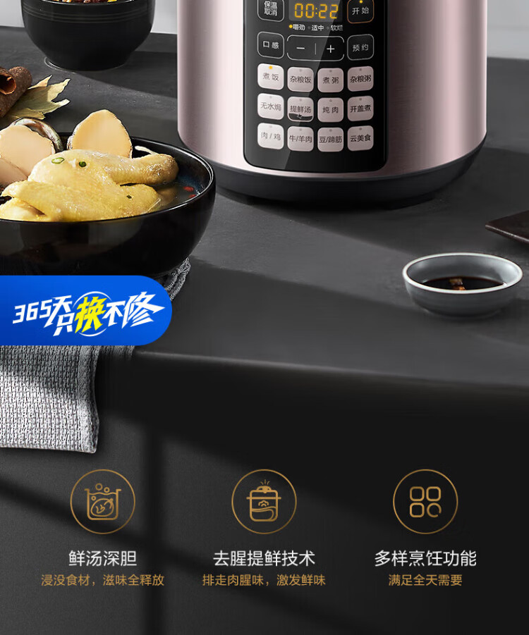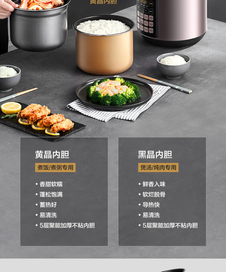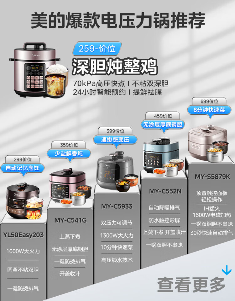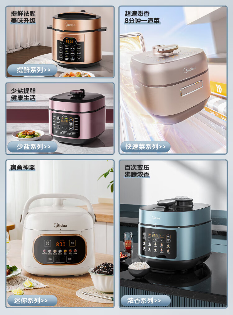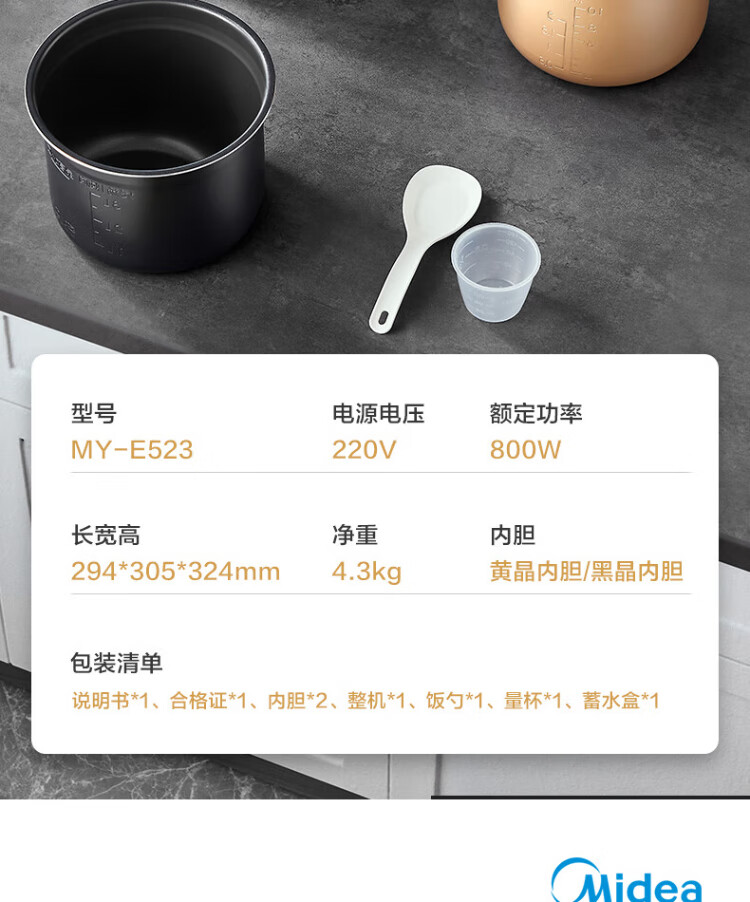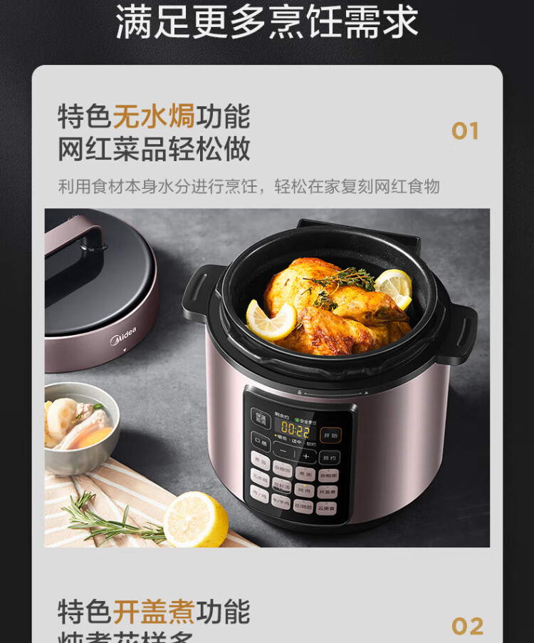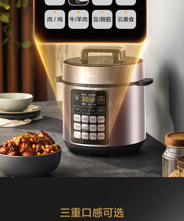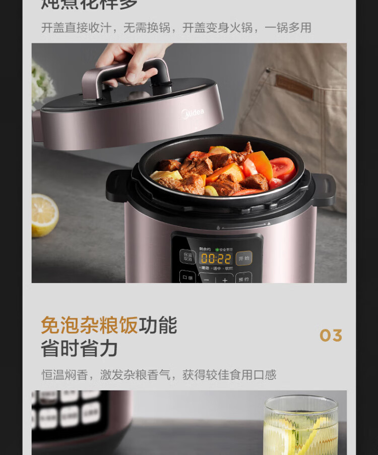 Midea deep soup tank electric pressure cooker 5L double tank rice cooker pressure cooker for home use 4-6 people fully automatic intelligent reservation soup stewing millet porridge MY-E523