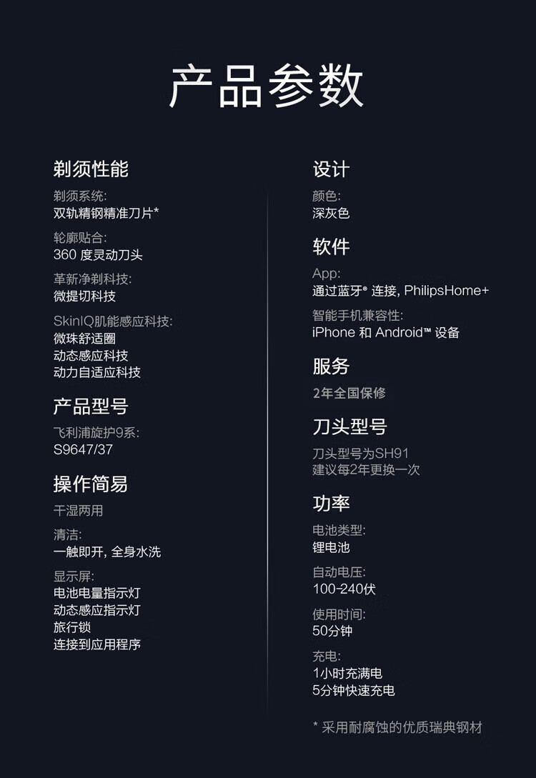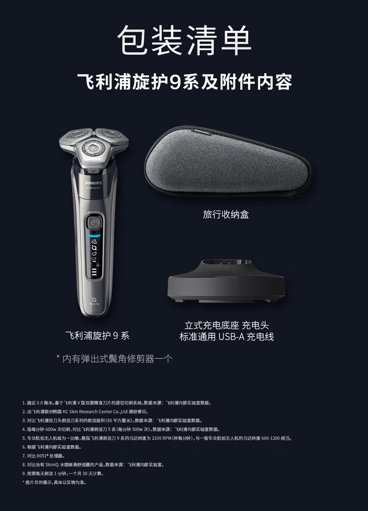 Philips (PHILIPS) Electric Shaver Spin Guard 9 Series Classic Edition SkinIQ High-End Smart Shaver Birthday Gift for Boys, Boyfriends, Husbands and Fathers