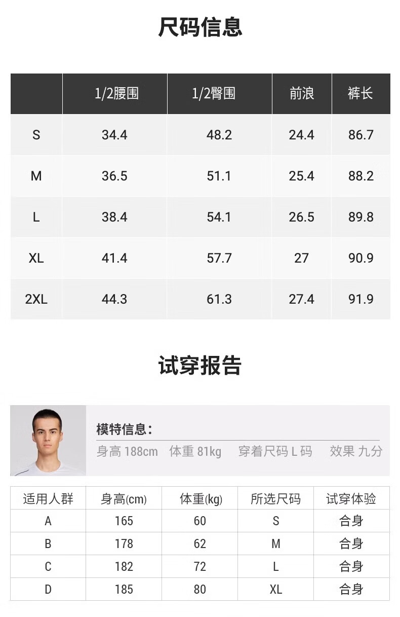 China (cm) 165 / 88-90 170 / 96-98 175 / 108-110 180 / 118-122 185 / 126-130