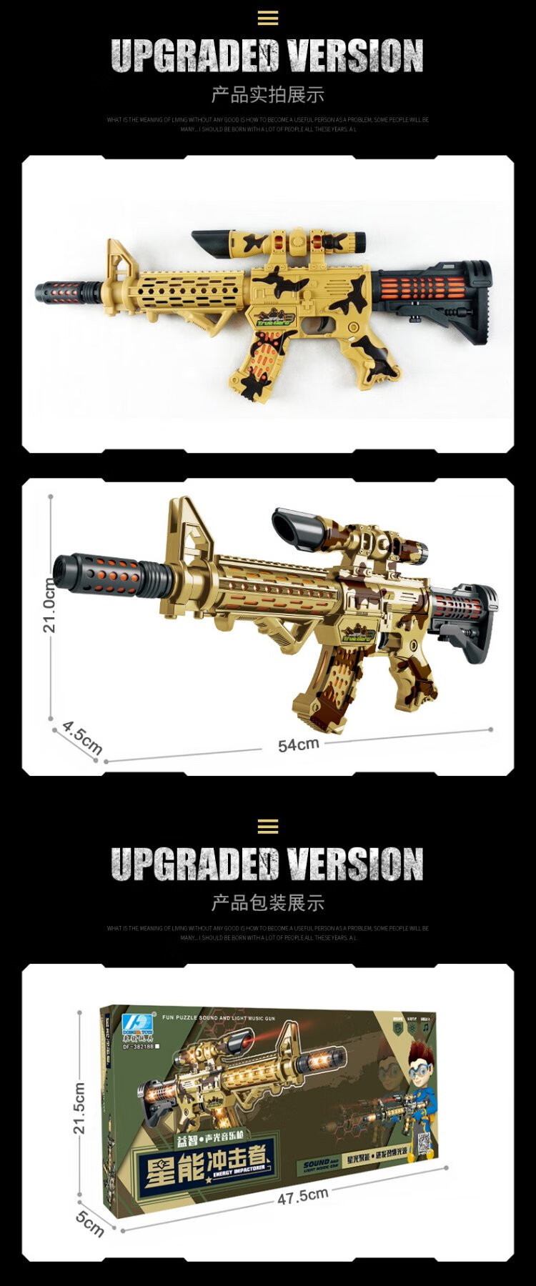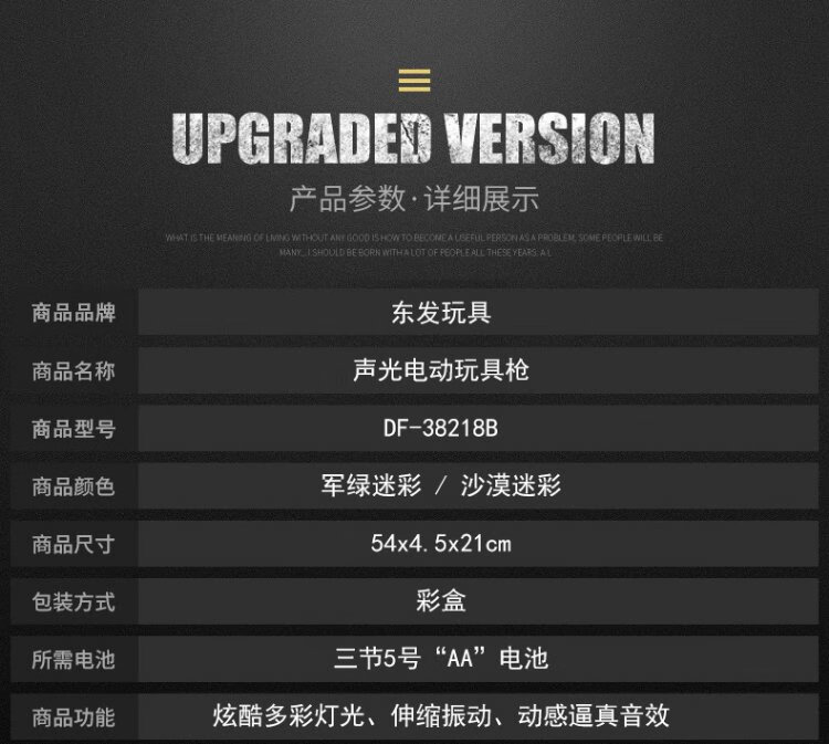 DONGFA Electric Sound and Light Toy Gun Sound Effect Luminous Submachine Gun Assault Rifle Boy Children's Day Gift for 3-6 Years Old