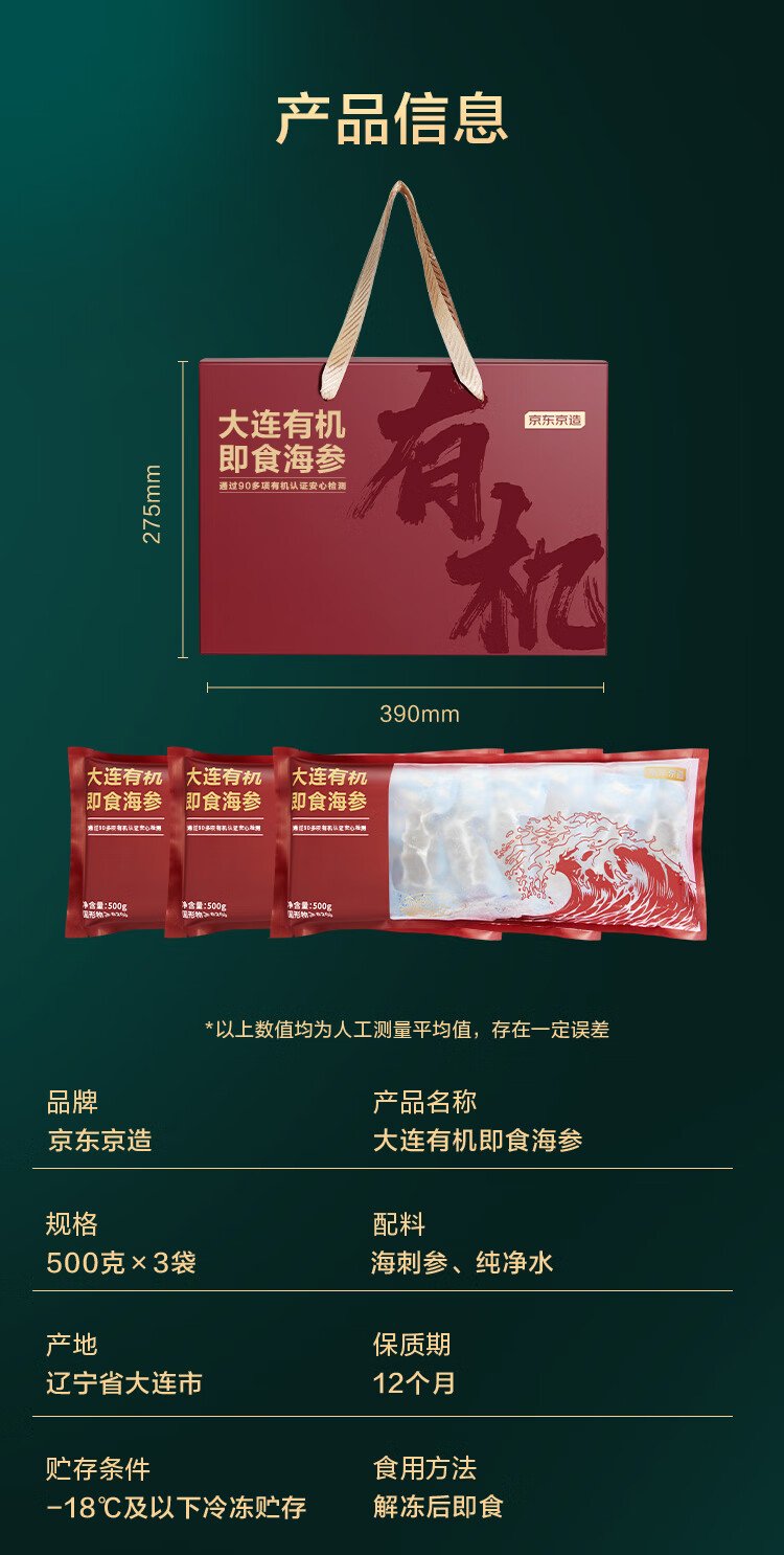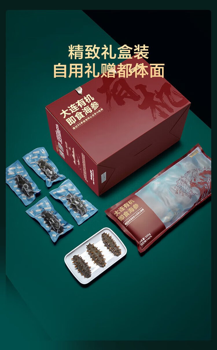 Jingdong Made in Dalian organic frozen ready-to-eat sea cucumber 500g*3 24-30 pieces in total Liao sea cucumber gift box