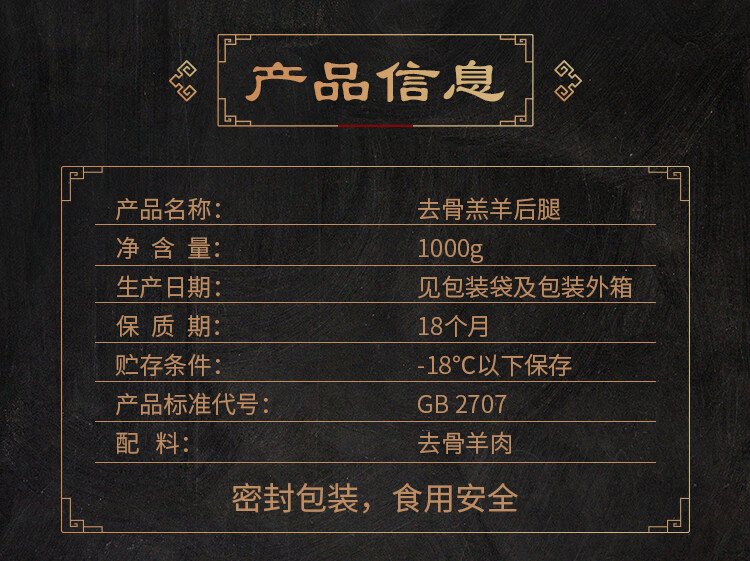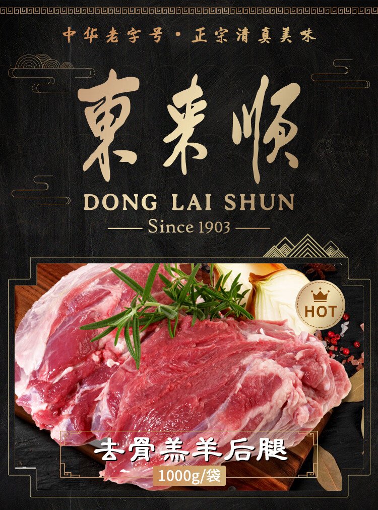 Donglaishun Inner Mongolia lamb boneless lamb hind leg meat 2Jin Jin is equal to 0.5kg BBQ stewed barbecue skewers Halal Chinese time-honored brand
