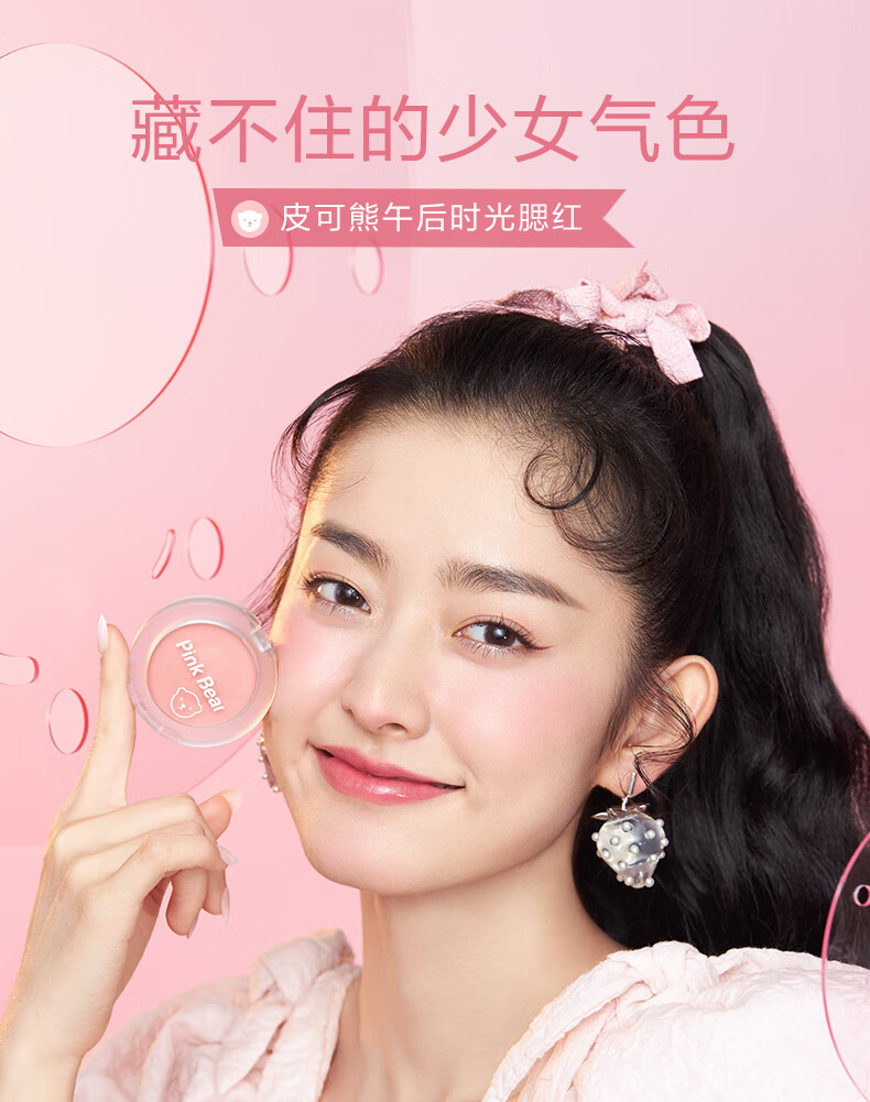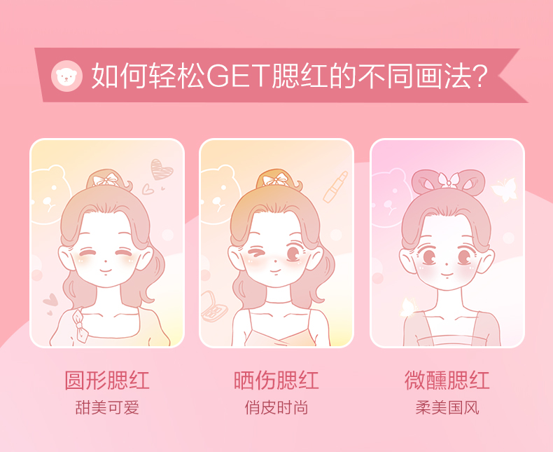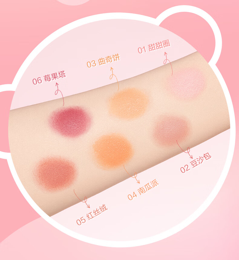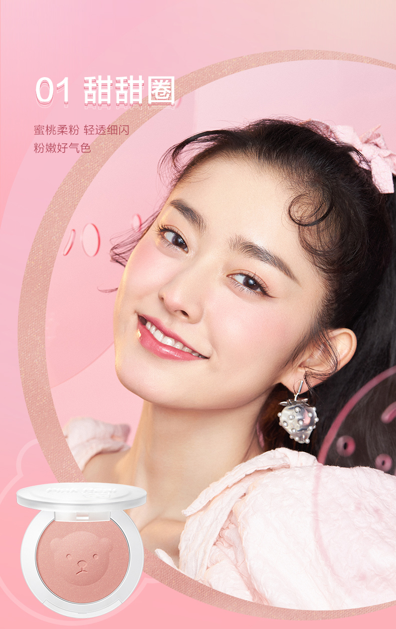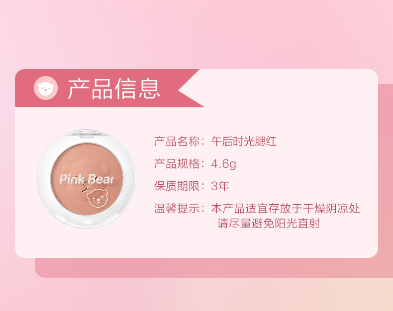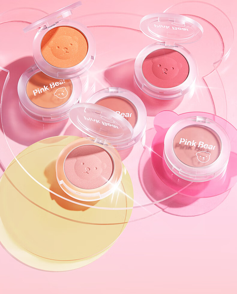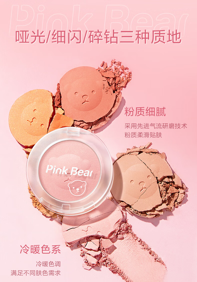 Pink Bear brightens skin tone, natural rouge powder for nude makeup, long-lasting color and rosiness, afternoon blush 02 red bean paste buns