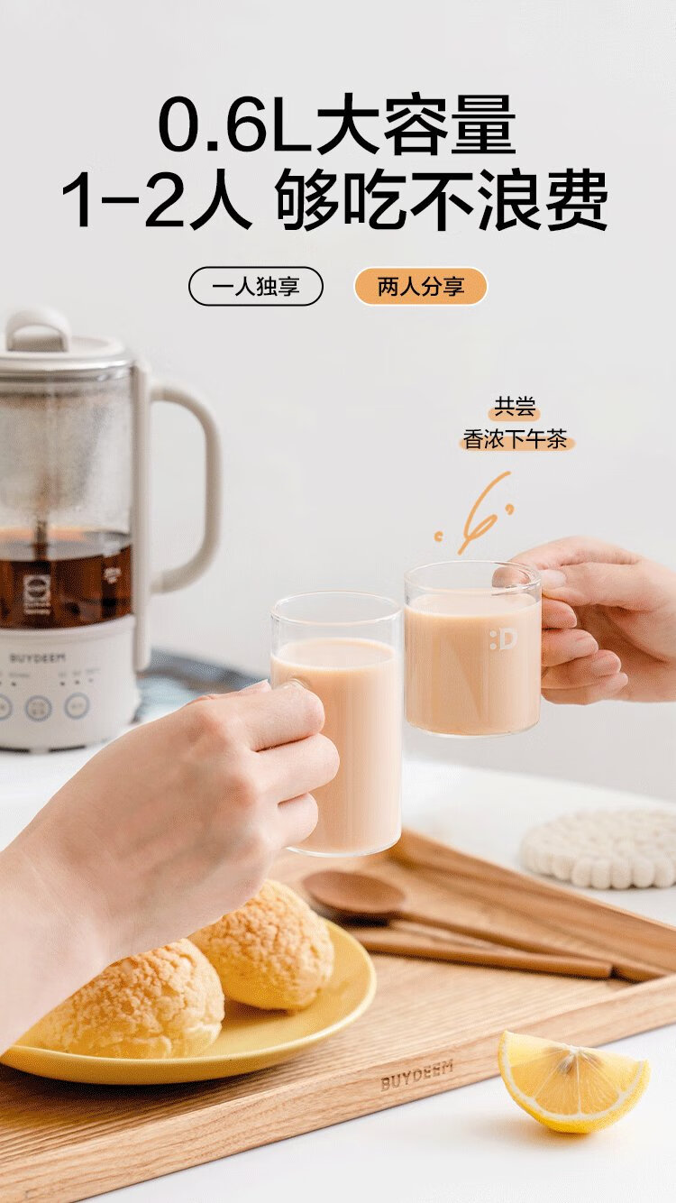 Buydeem glue-free health kettle electric kettle mini health cup office insulated electric kettle tea maker K32 oatmeal white (excluding extraction basket)