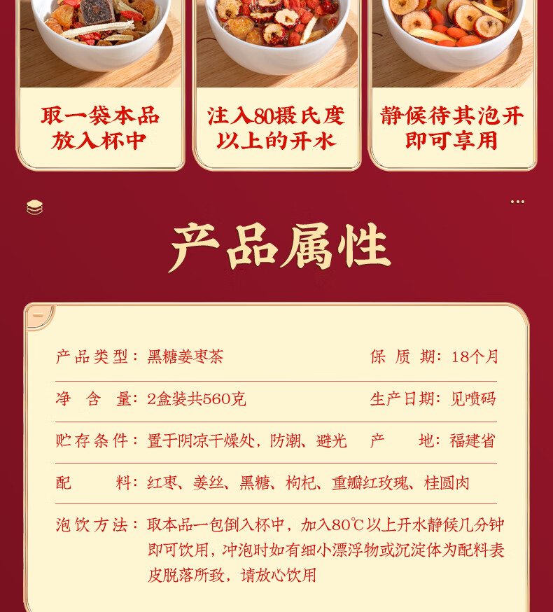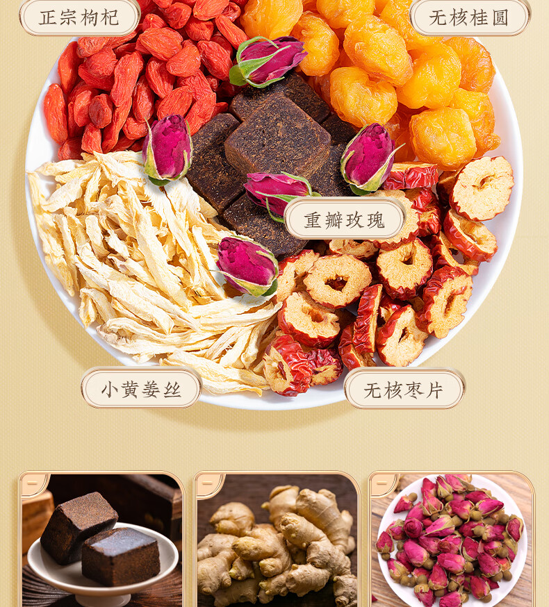 Fumingyuan Health Tea Brown Sugar Ginger Date Tea 560g Ginger Shreds Longan Red Dates Wolfberry Rose Tea Soaked in Water