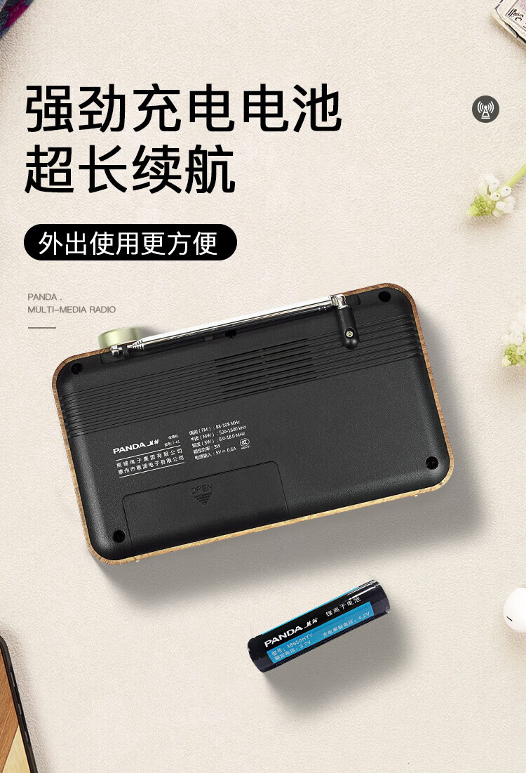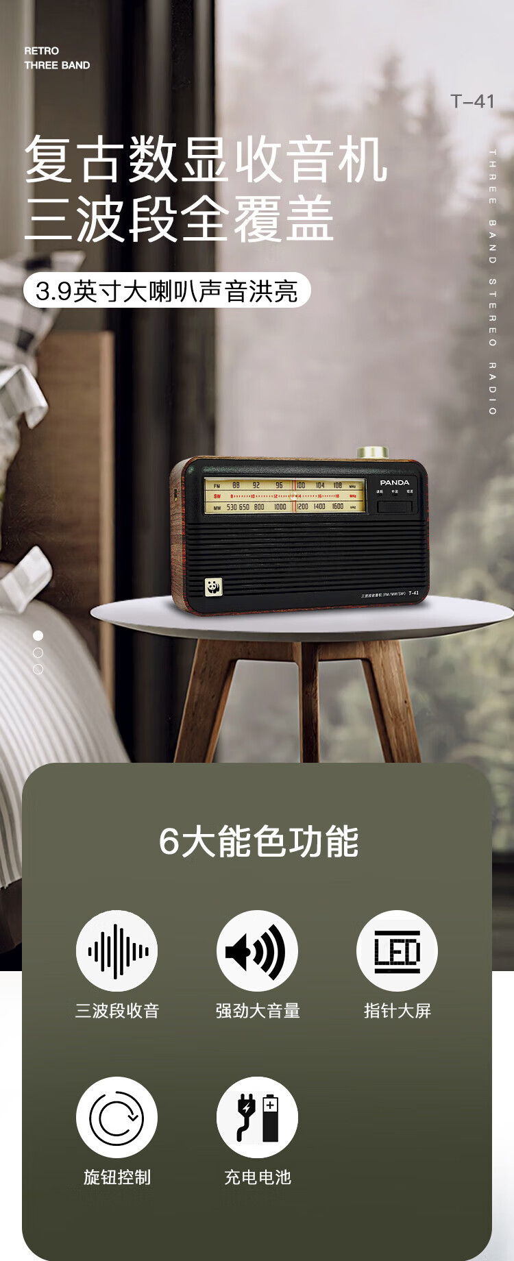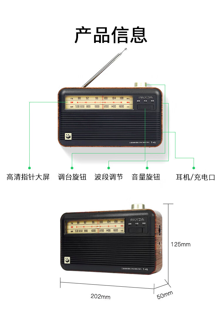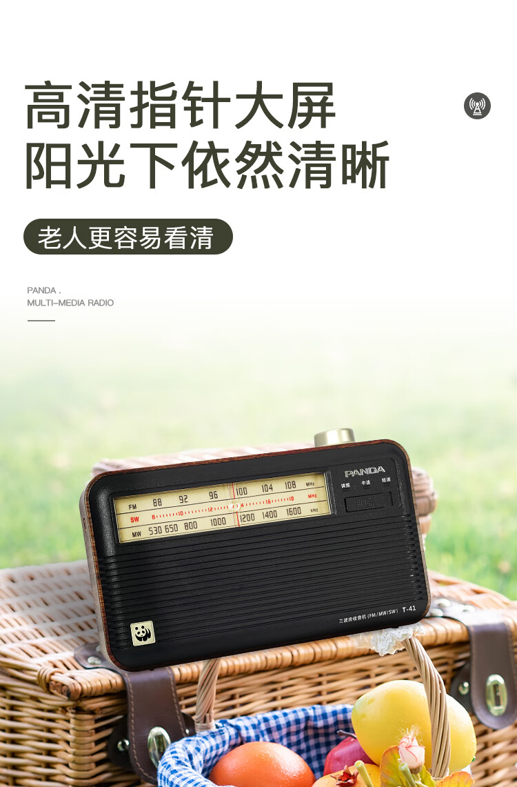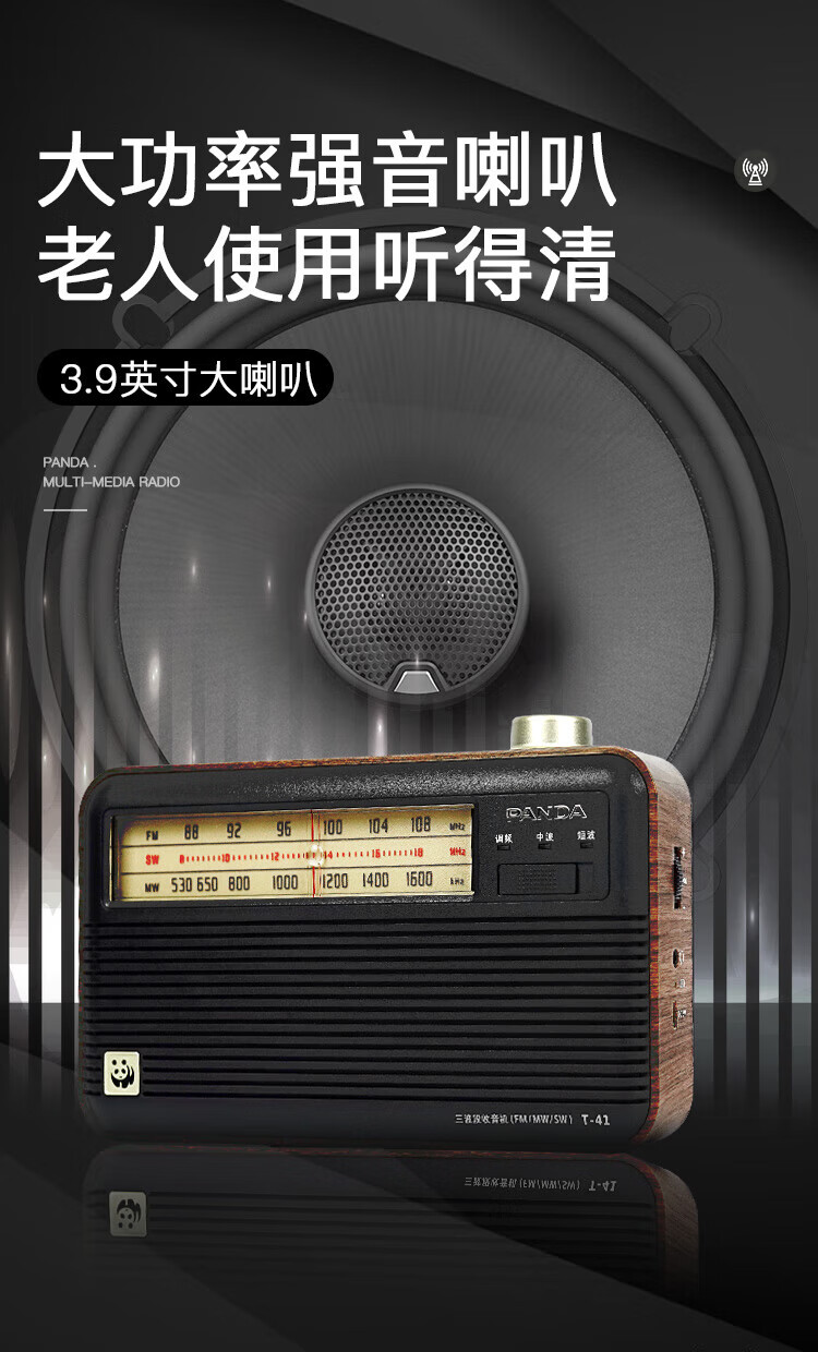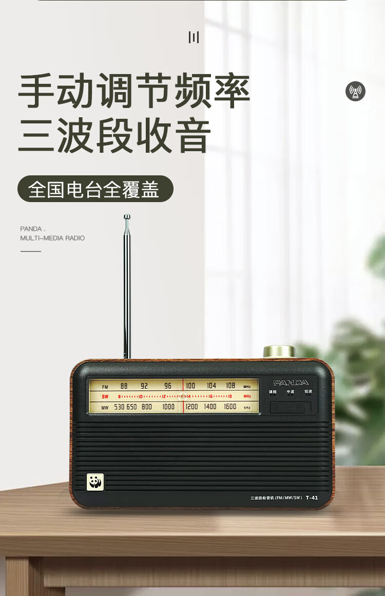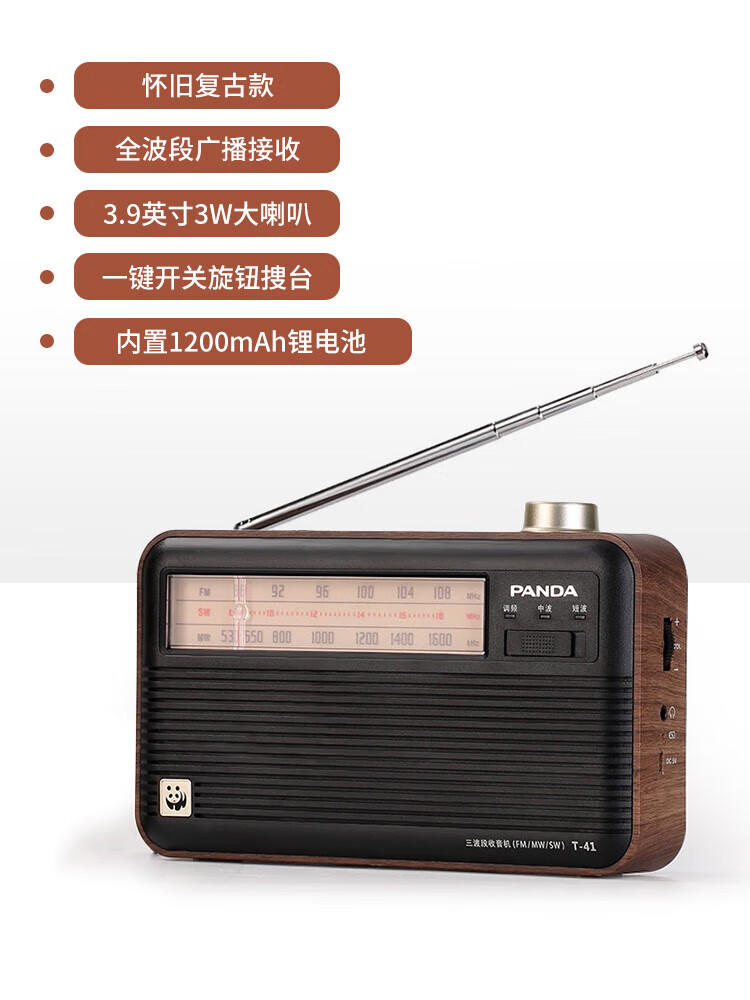 Panda (PANDA) T-41 nostalgic retro full-band radio lithium battery three-band large speaker wood grain old man semiconductor