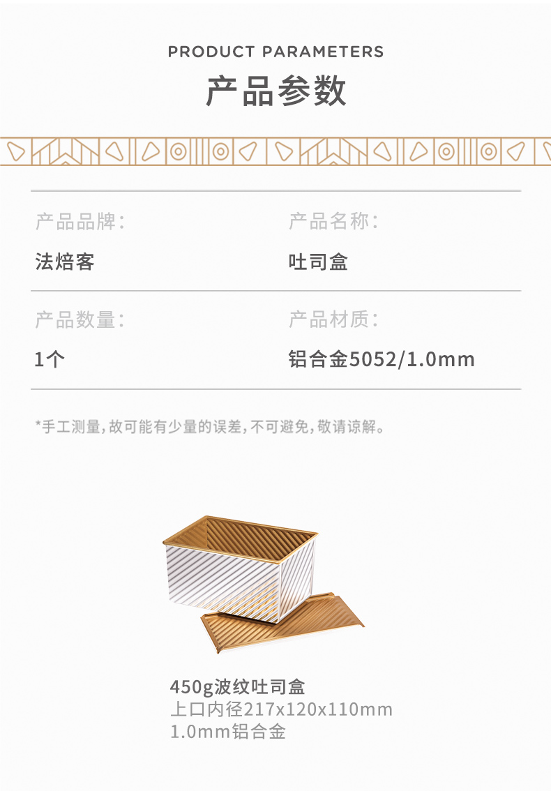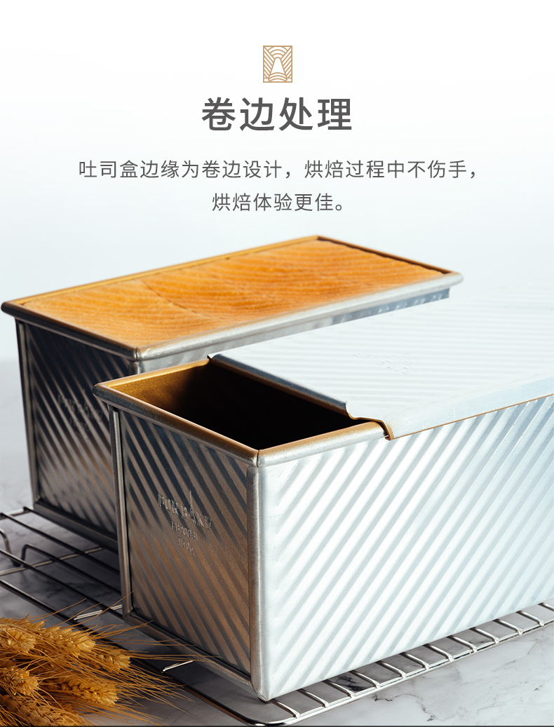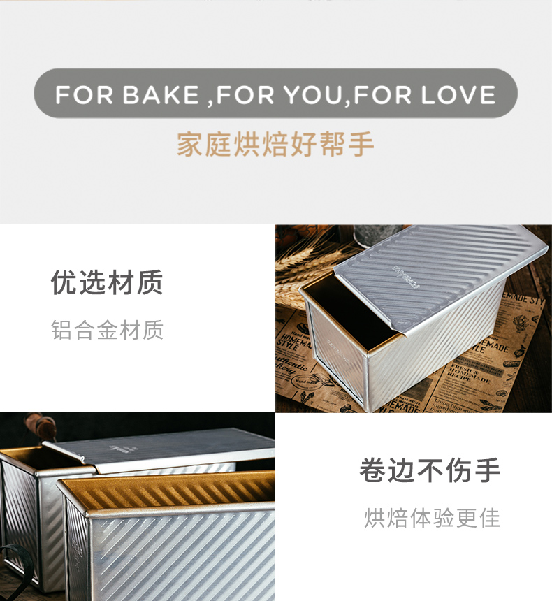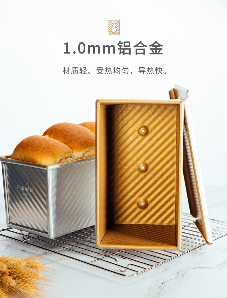 French bakery toast mold 450g non-stick toast box with lid aluminum alloy energy-saving corrugated sliding lid toast box