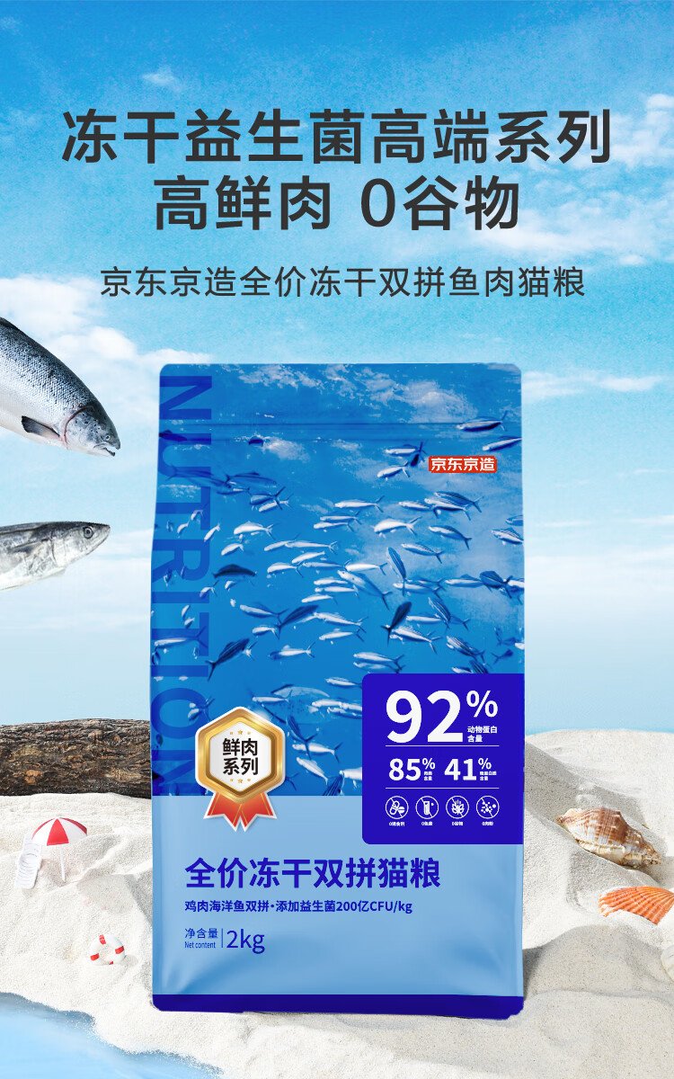 Made in Tokyo, freeze-dried double-combination full-price cat food fish flavor 2kg, high fresh meat nutrition, beautifying hair and cheeks, probiotics for adult kittens